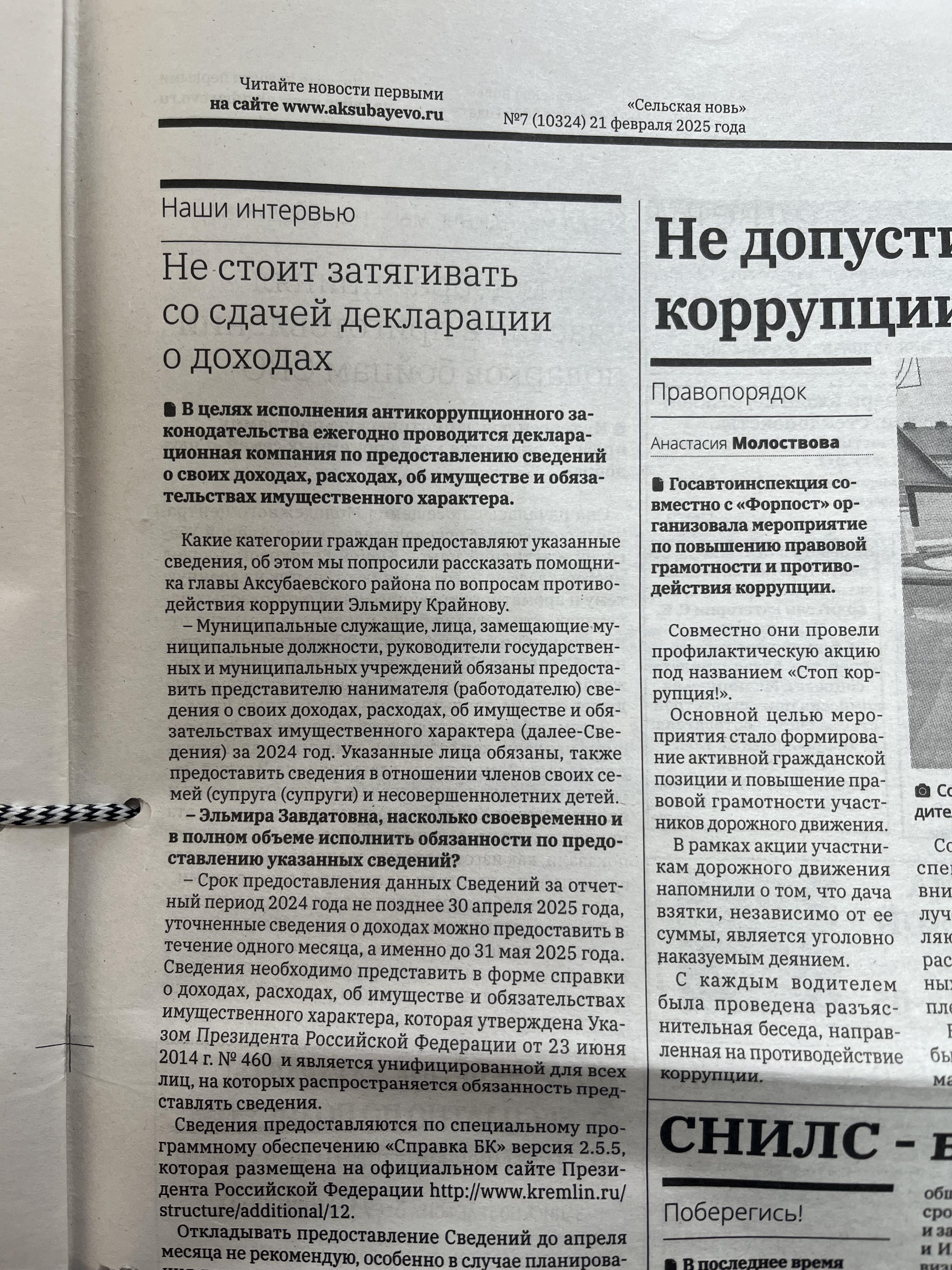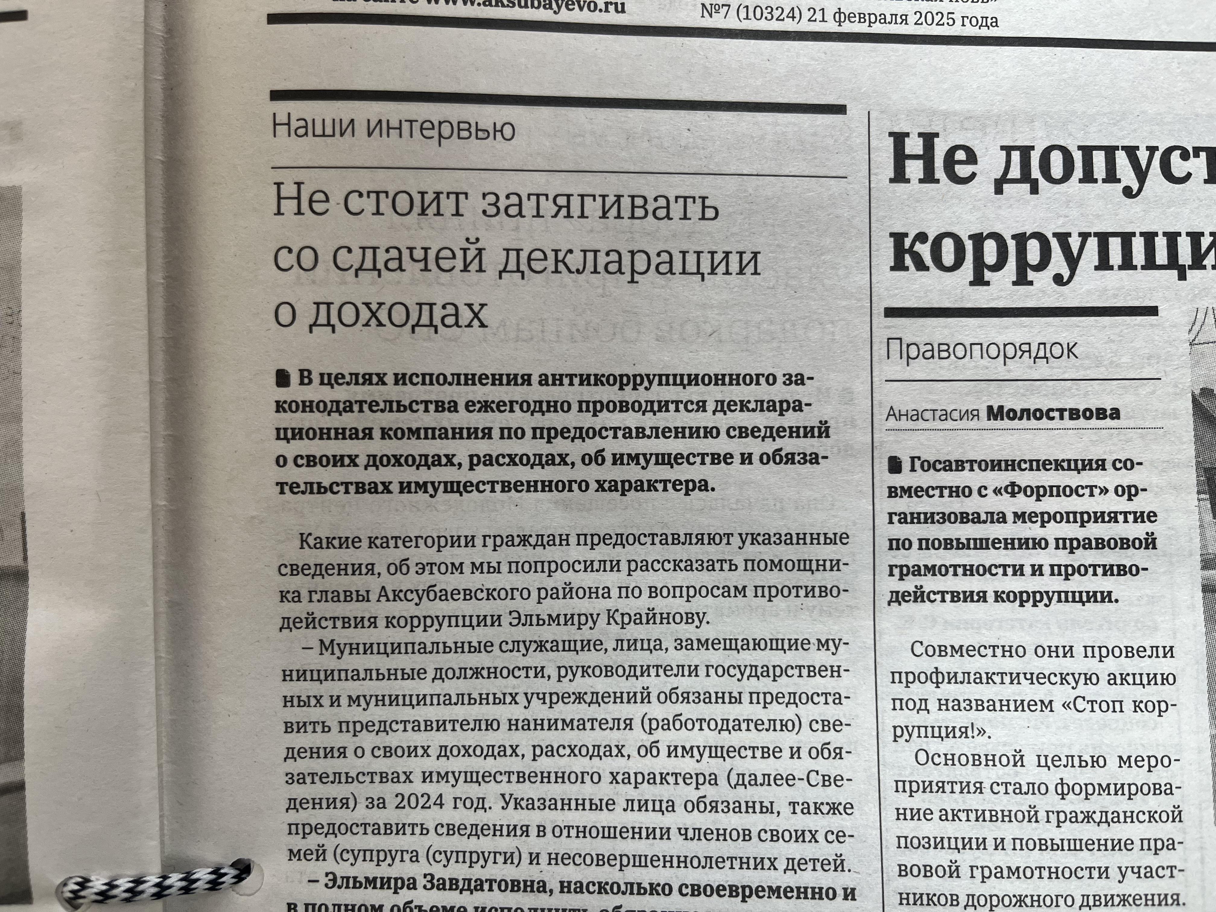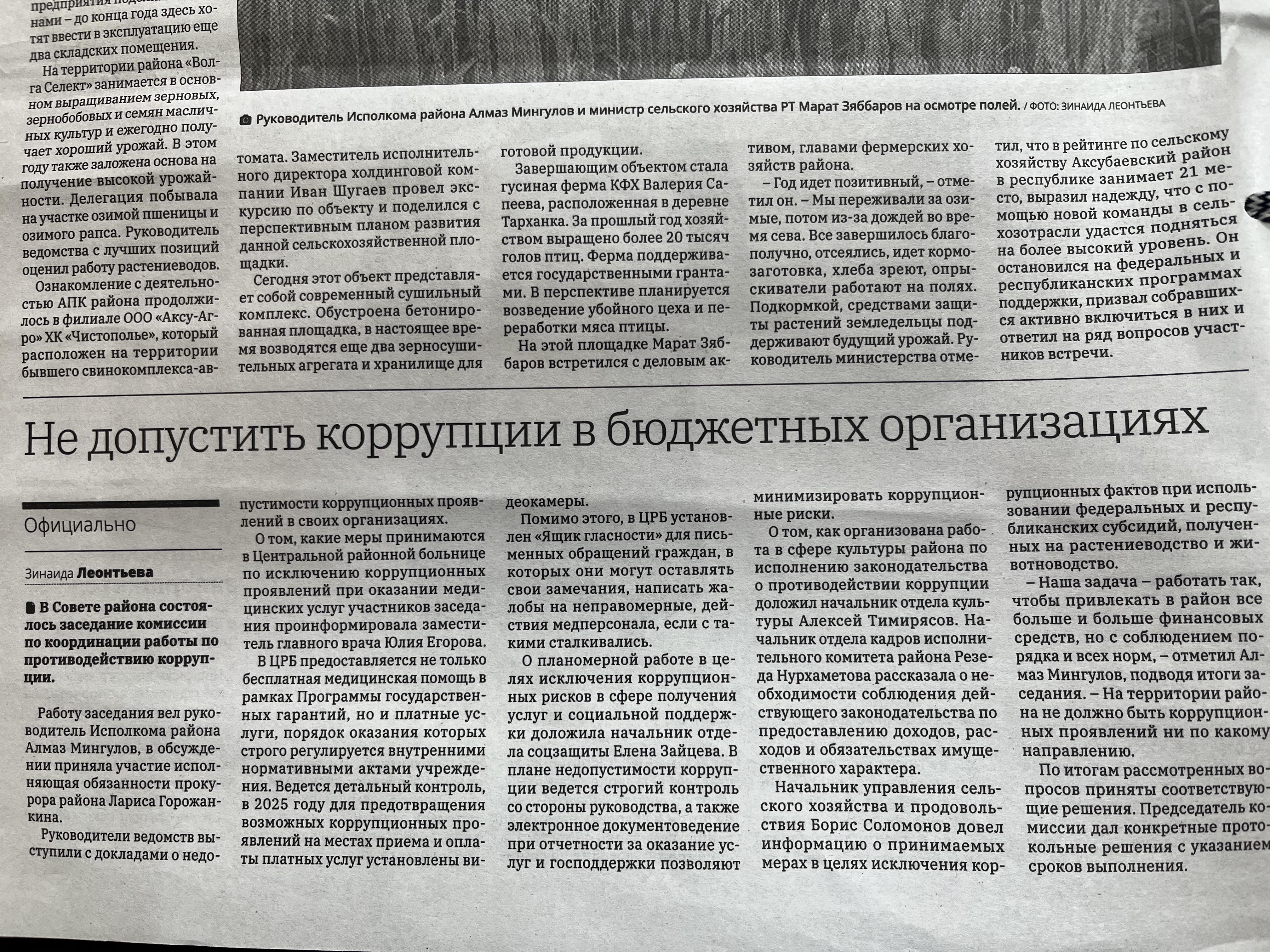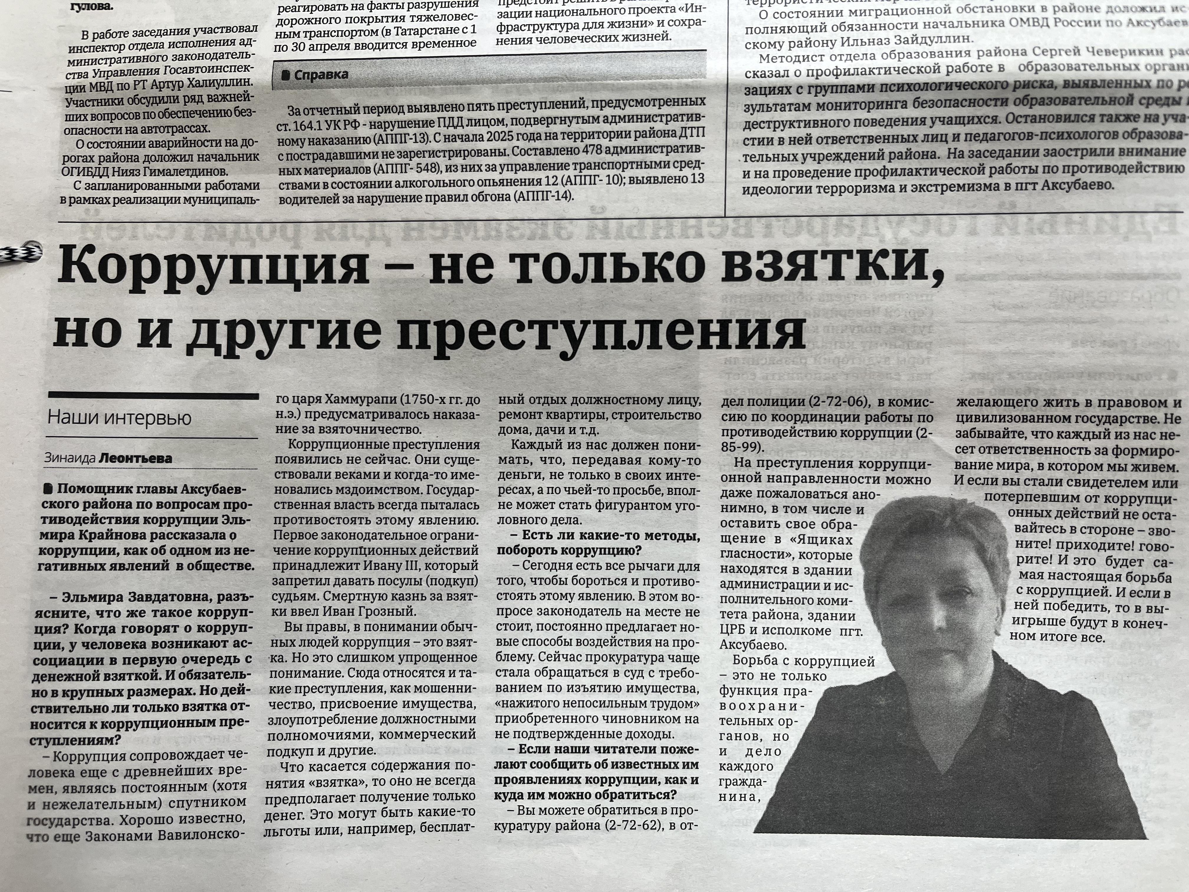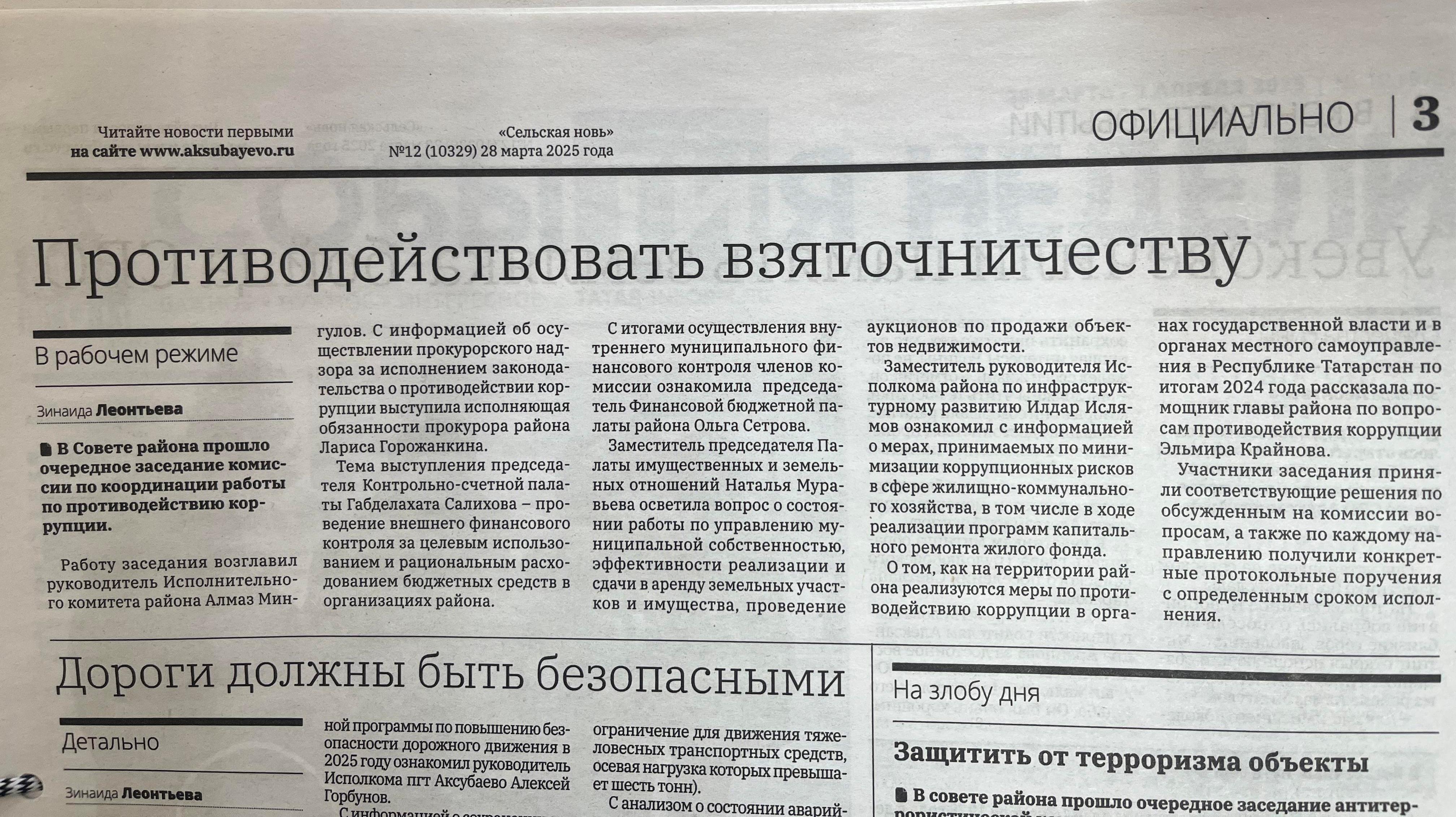 12 января текущего года с участием министра экономики РТ Марата Сафиуллина и заместителя министра внутренних дел по РТ Рафаиля Гильманова прошло совещание в режиме видеоконференции. На ней говорилось о результатах исследований о коррупции в Республике Татарстан и о работе МВД по РТ по пресечению коррупционной деятельности. Приняли участие в брифинге члены антикоррупционной комиссии Аксубаевского района во главе с председателем Николаем Станововым.