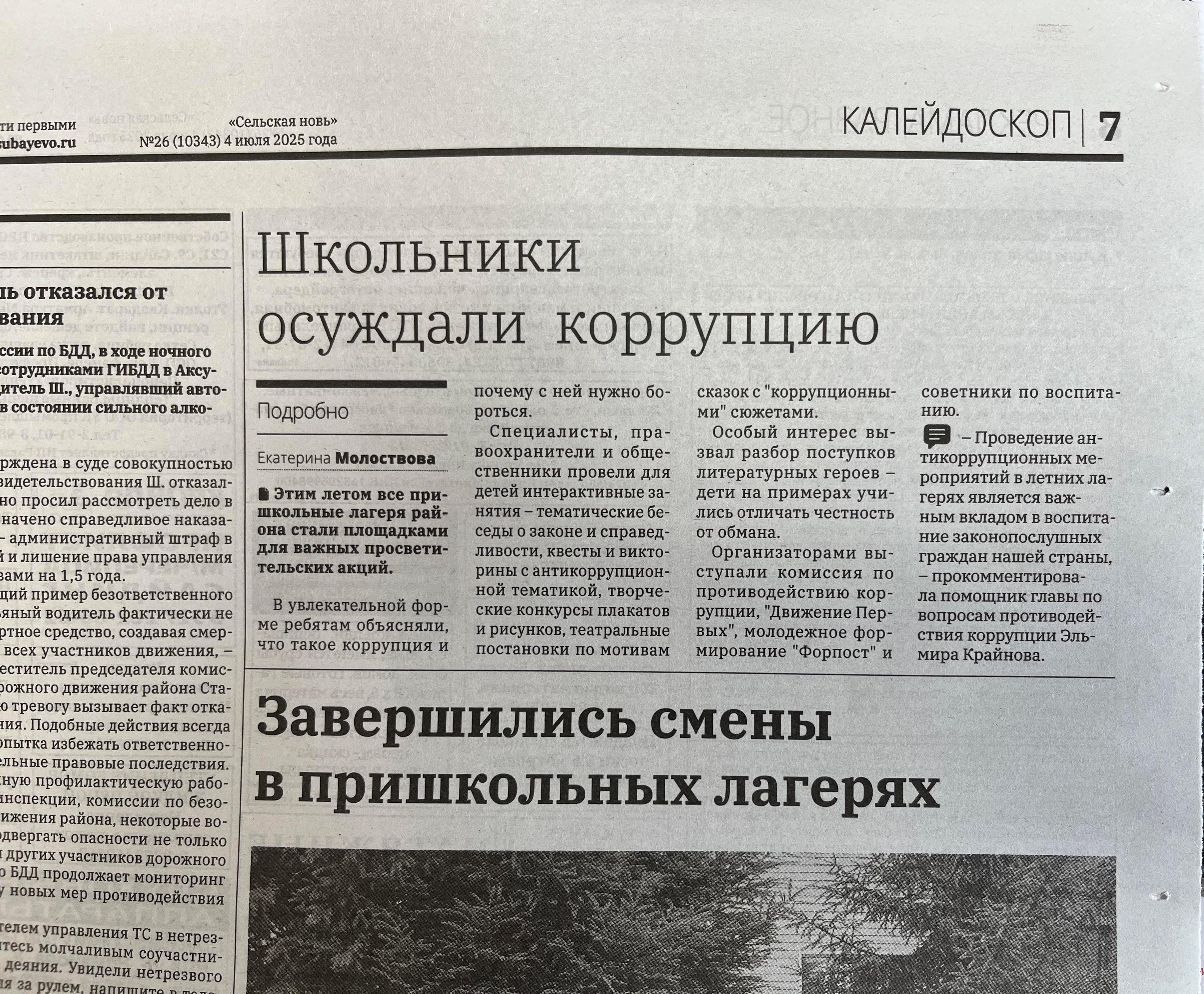 Подвели итоги муниципального этапа конкурсов антикоррупционной направленности- творческий конкурс плакатов и роликов «Знай и не допускай!» и конкурс сочинений ««Строим будущее без коррупции»», «Скажем коррупции «Нет!» Цель конкурса, объявленного Министерством образования и науки РТ, - воспитание у учащихся негативного отношения к коррупции. В конкурсе приняли участие обучающиеся 5-11 классов образовательных учреждений района. Оценка работ на муниципальном этапе проводилась в отделе образования методистом по национальному образованию Зульфирой Ислямовой с участием директора МБУ ДО ЦВР Николая Еграшкина, с участием помощника главы по вопросам противодействия коррупции Эльмиры Крайновой. Отобранные работы направлены на республиканский этап конкурса антикоррупционной направленности.