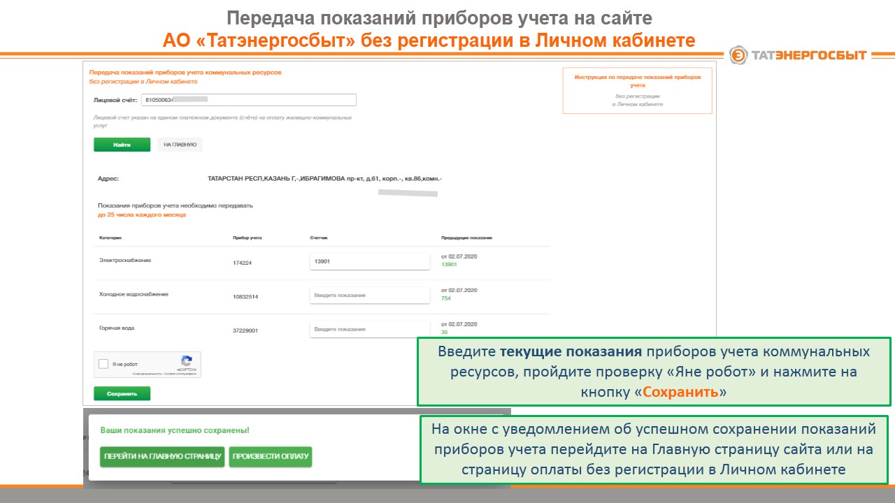 Онлайн-сервисы АО Татэнергосбыт для оплаты жилищно-коммунальных услуг и передачи показаний приборов учета коммунальных ресурсов