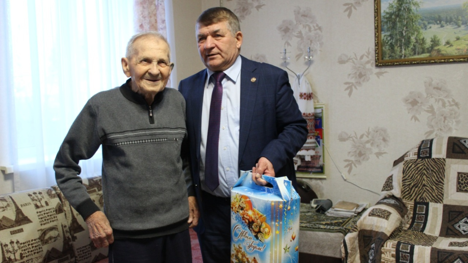Глава района Камиль Гилманов навестил единственного участника Великой Отечественной войны Елисея Мурзича Тимирясова. Поздравил с наступающим новым годом!