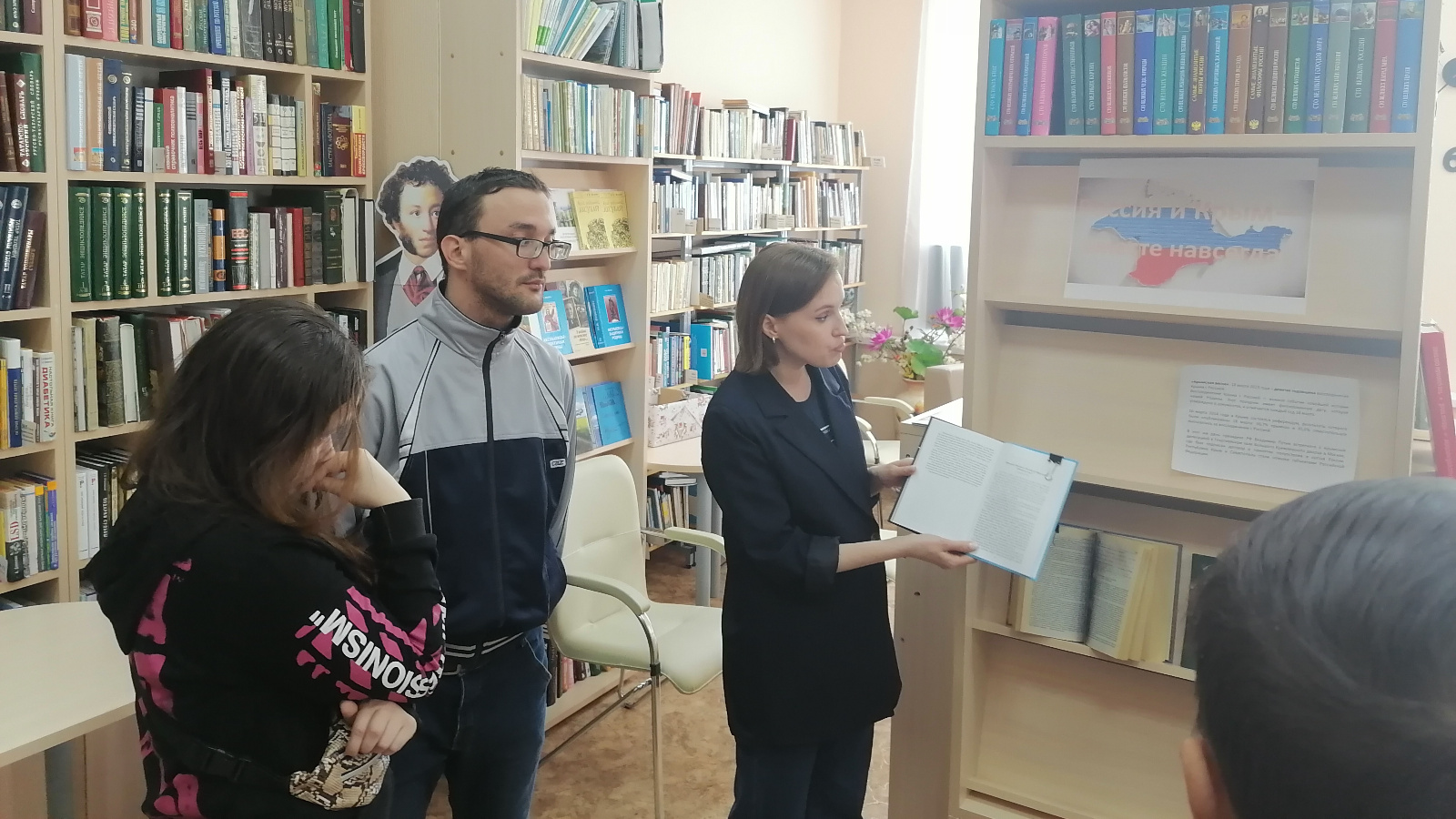 Библиотекарь отметила, что Крым – это легенда, это песня, записанная нотами пещерных городов, камнями средневековых замков и крепостей. Это наше общее достояние и важнейший фактор стабильности в регионе. В сердце, в сознании людей Крым всегда был и остается неотъемлемой частью России. Эта убежденность, основанная на правде и справедливости, была непоколебимой, передавалась из поколения в поколение, перед ней были бессильны и время, и обстоятельства, бессильны все драматические перемены, которые мы переживали, переживала наша страна в течение всего XX века.
