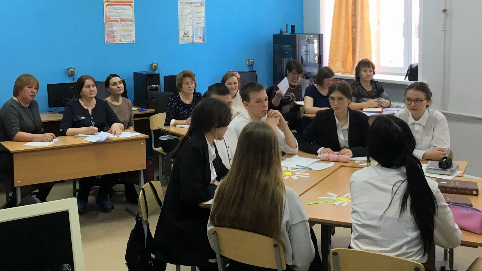 После самоанализа и анализа уроков учителя русского языка и литературы за круглым столом обсудили вопросы подготовки к государственной итоговой аттестации в форме основного государственного экзамена, внедрения обновленных ФГОС среднего общего образования и федеральных образовательных программ по русскому языку и литературе.