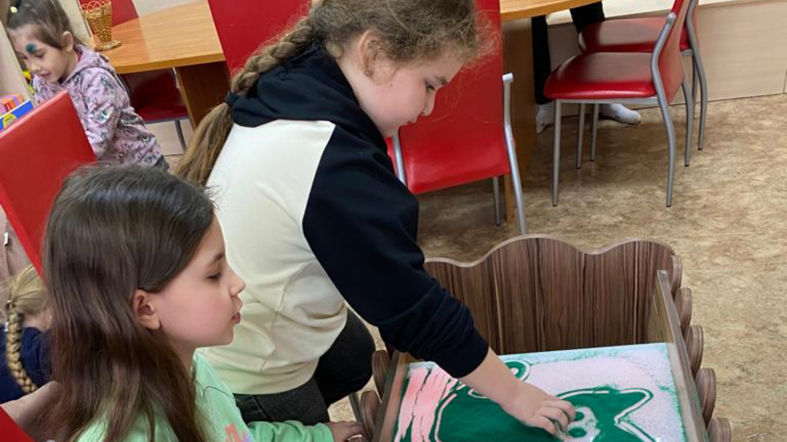 Завершили занятия релаксационным занятием под названием «Антистресс-раскраски». Это один из видов арт-терапии, а раскрашивание – приятное и полезное занятие, а также песочной Арт- терапией. Дети чувствуют ту самую лёгкость и удовольствие от самого процесса деятельности, отличный способ для улучшения настроения.