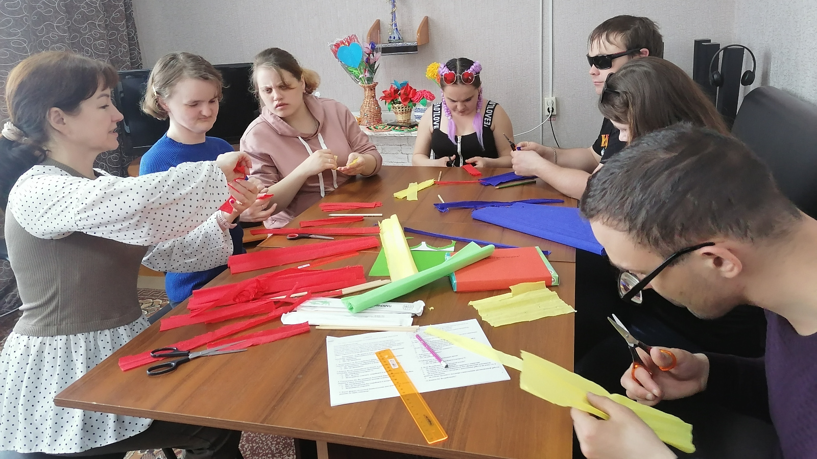 Кружковая работа – одно из любимых занятий получателей соцуслуг. На очередном занятии ребята изготовили цветы из фоамирана.