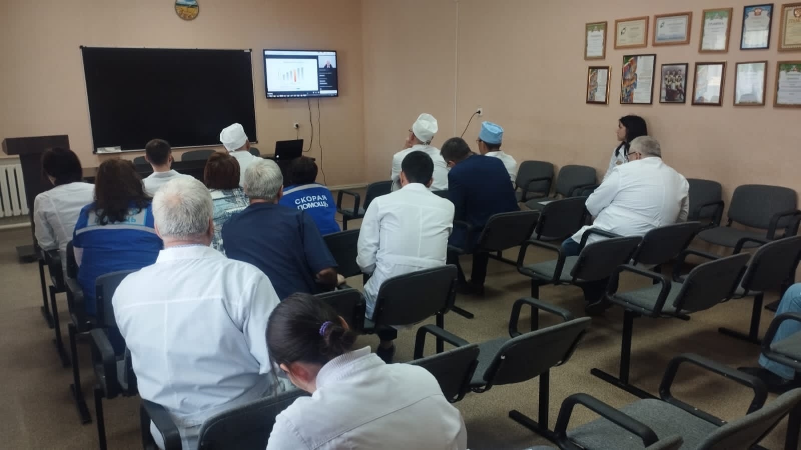 Сегодня медицинские работники ГАУЗ « Аксубаевская ЦРБ» приняли активное участие в онлайн конференции на тему: «Неотложные состояния в кардиологии». На конференции рассматривались вопросы: «Пациенты высокого риска с Артериальной гипертонией», «Артериальная гипертония у подростков», « Инфаркт миокарда», « Острая декомпенсация ХСН», « Тромбоэмболия легочной артерии», « Острая диссекция аорты». Спикеры конференции : главный кардиолог ПФО Галявич А.С., главный внештатный кардиолог МЗ РТ Ким З.Ф. и доцент кафедры кардиологии ФПК и ППС ФГБОУ ВО «Казанский ГМУ» МЗ РФ.