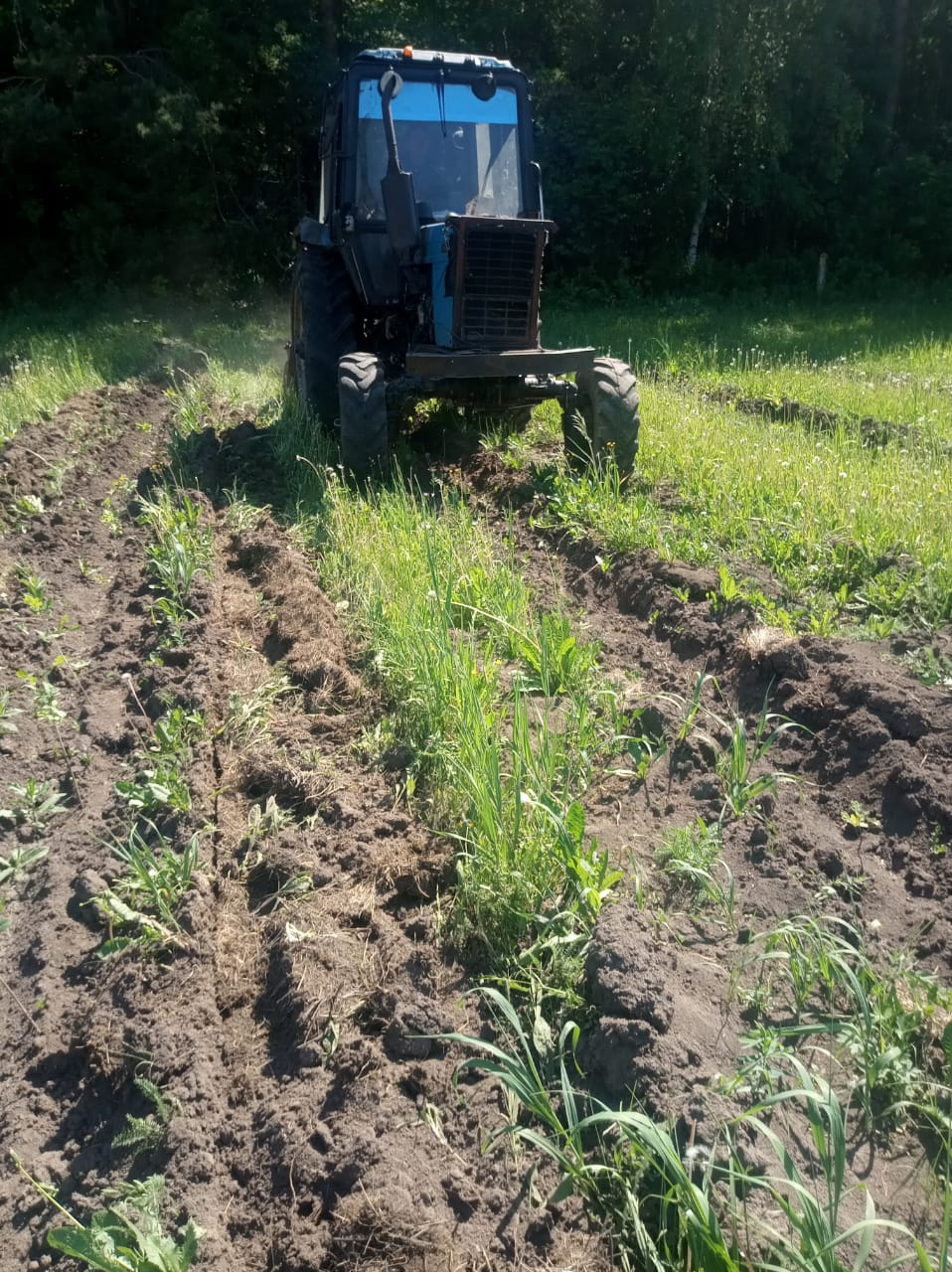 Тракторист Эдуард Федоров на тракторе МТЗ -80 с культиватором лесной борозды курсирует по посадке, разрыхляя почву вокруг саженцев и уничтожая сорняки. После механической обработки у саженцев ели, сосны, березы, других видов лесных культур улучшится условие для дальнейшего роста.