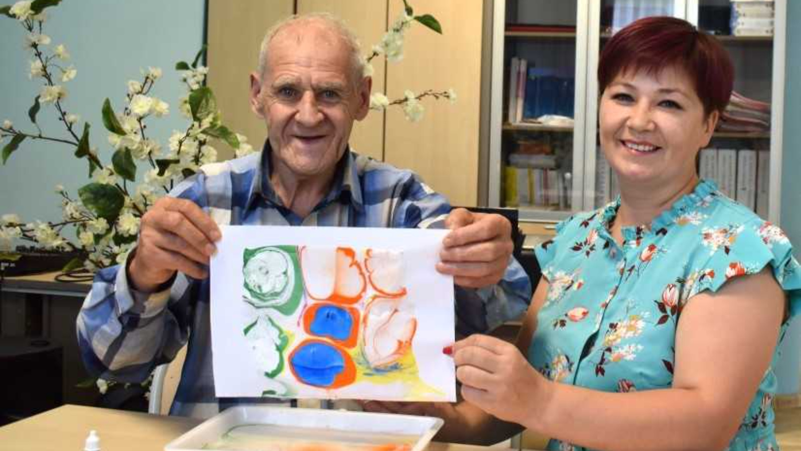 Психолог Федоровского дома-интерната для престарелых и инвалидов Лилия Лукина провела занятие "Создание своего индивидуального "Я" в восточной технике рисования на воде".