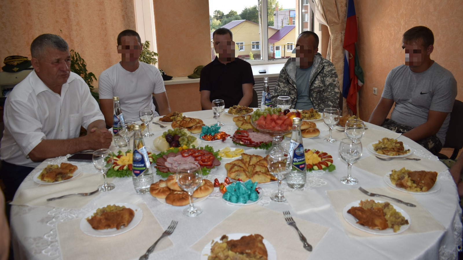 Для воинов накрыли стол, состоялась душевная беседа за чашкой чая. Воины рассказали о буднях в СВО, поблагодарили за поддержку.