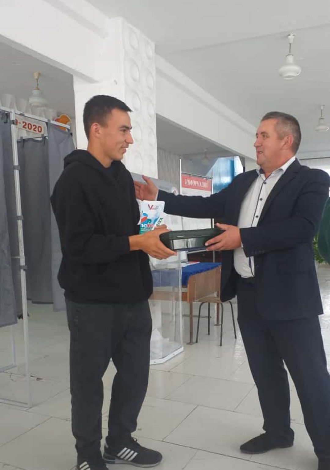 Девятнадцатилетний житель деревни Новое Узеево Инсаф Магизов проголосовав впервые получил памятку избирателя и подарок от Участковой избирательной комиссии.