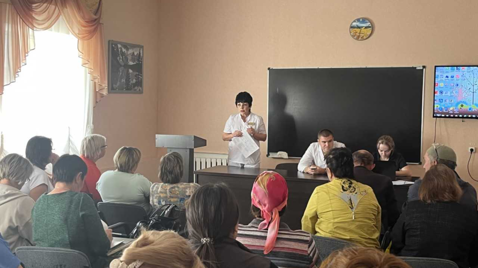В ходе совещания, совместно с заместителем главного врача по медицинскому обслуживанию населения Ю.А. Егоровой, обсудили рабочие вопросы. Главная медицинская сестра М.А.Власова напомнила о правилах обращения с опасными отходами, и необходимости соблюдения всех санитарных норм на фельдшерских пунктах.