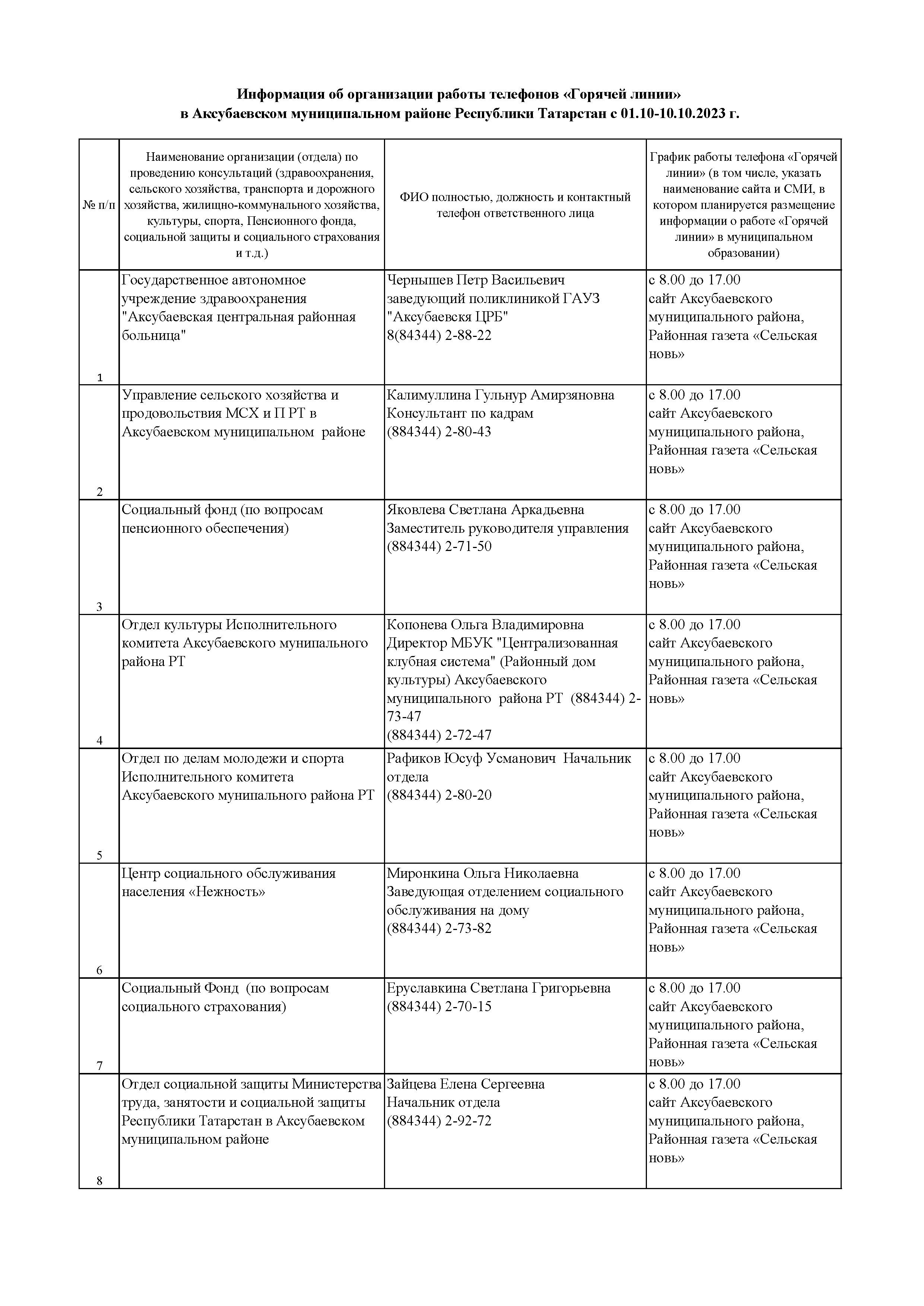 Об организации работы телефонов «Горячей линии» с 01.10-10.10.2023 г.
