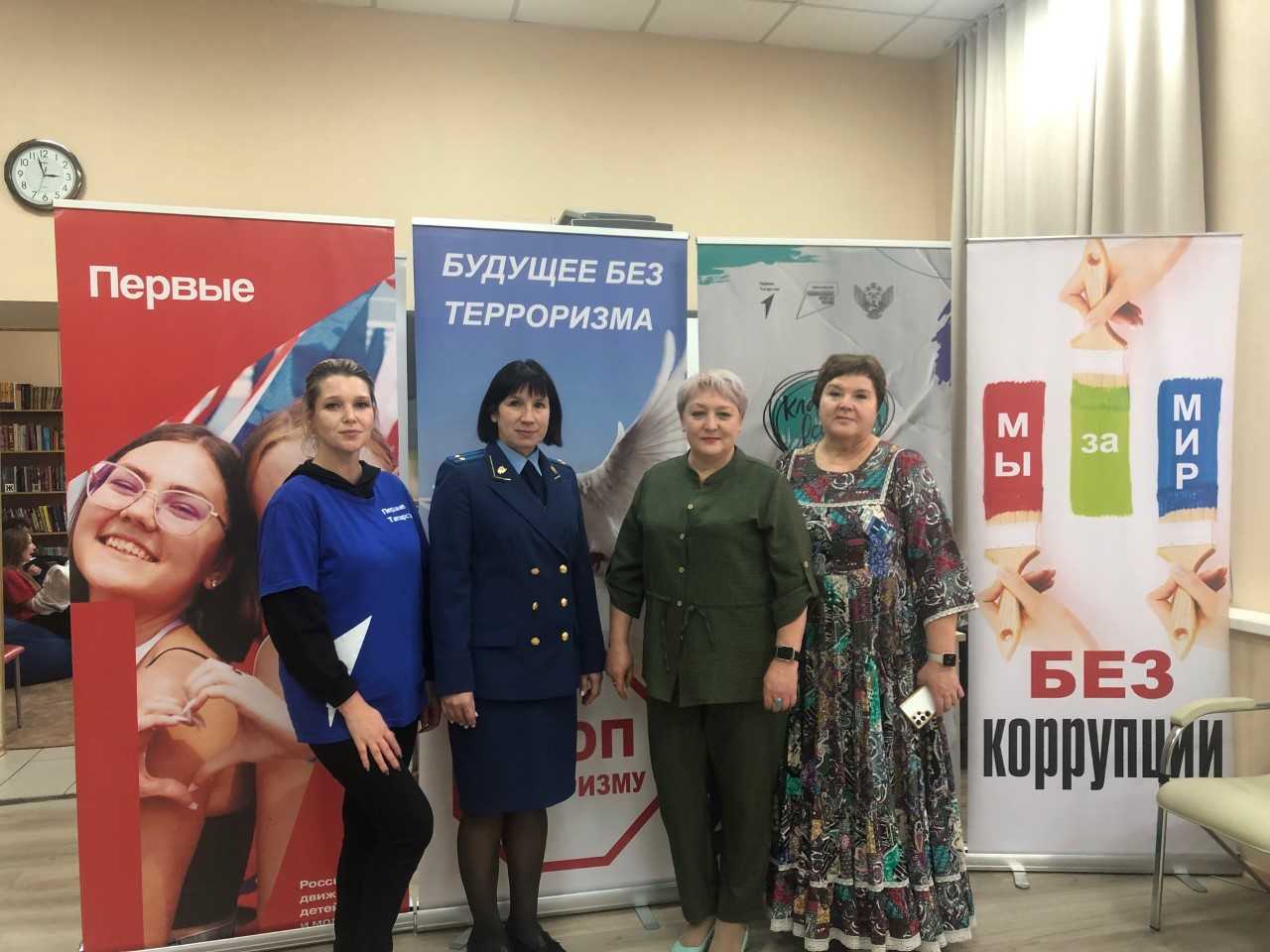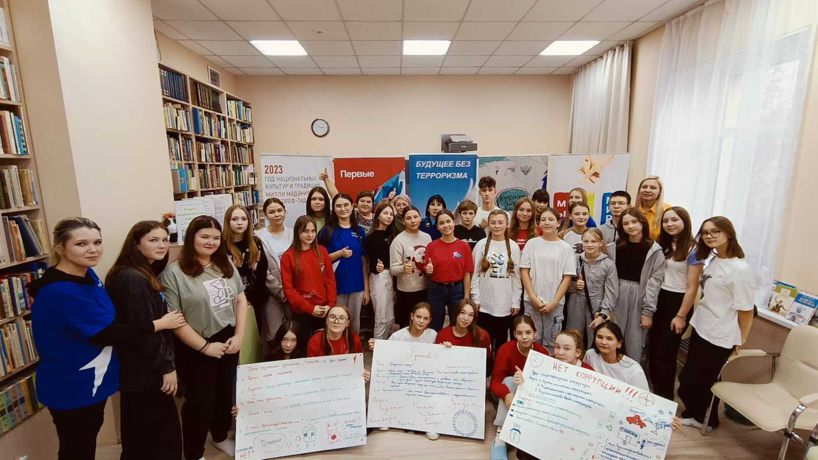 В центральной библиотеки с участием ребят Движением Первых провели квиз под названием «Единство в нас», где ребята разделились на три станции и подготовили проекты на темы «Антитеррор», «Антикоррупция» и «Народное единство». Мероприятие провели с участием заместителя прокурора района Ларисы Горожанкиной, помощником главы по противодействию коррупции Эльмиры Крайновой, председателя Общественного Совета Ирины Телешевой. Заместитель прокурора района выступила перед ребятами по теме профилактика терроризма и экстремизма, помощник главы рассказала ребятам, что такое коррупция, почему она существует, к чему приводит, и что мы можем сделать, чтобы ее минимизировать. Председатель Общественного Совета рассказала ребятам о Дне народного единства , как образовался этот день, о том, что наш народ с большим прошлым, самобытным культурным наследием и крепкой силой духа. Ребята подготовили и защищали свои проекты по данным темам, В ходе мероприятия мы сделали главный вывод: если мы все объединимся, мы можем многое, и все можем победить.