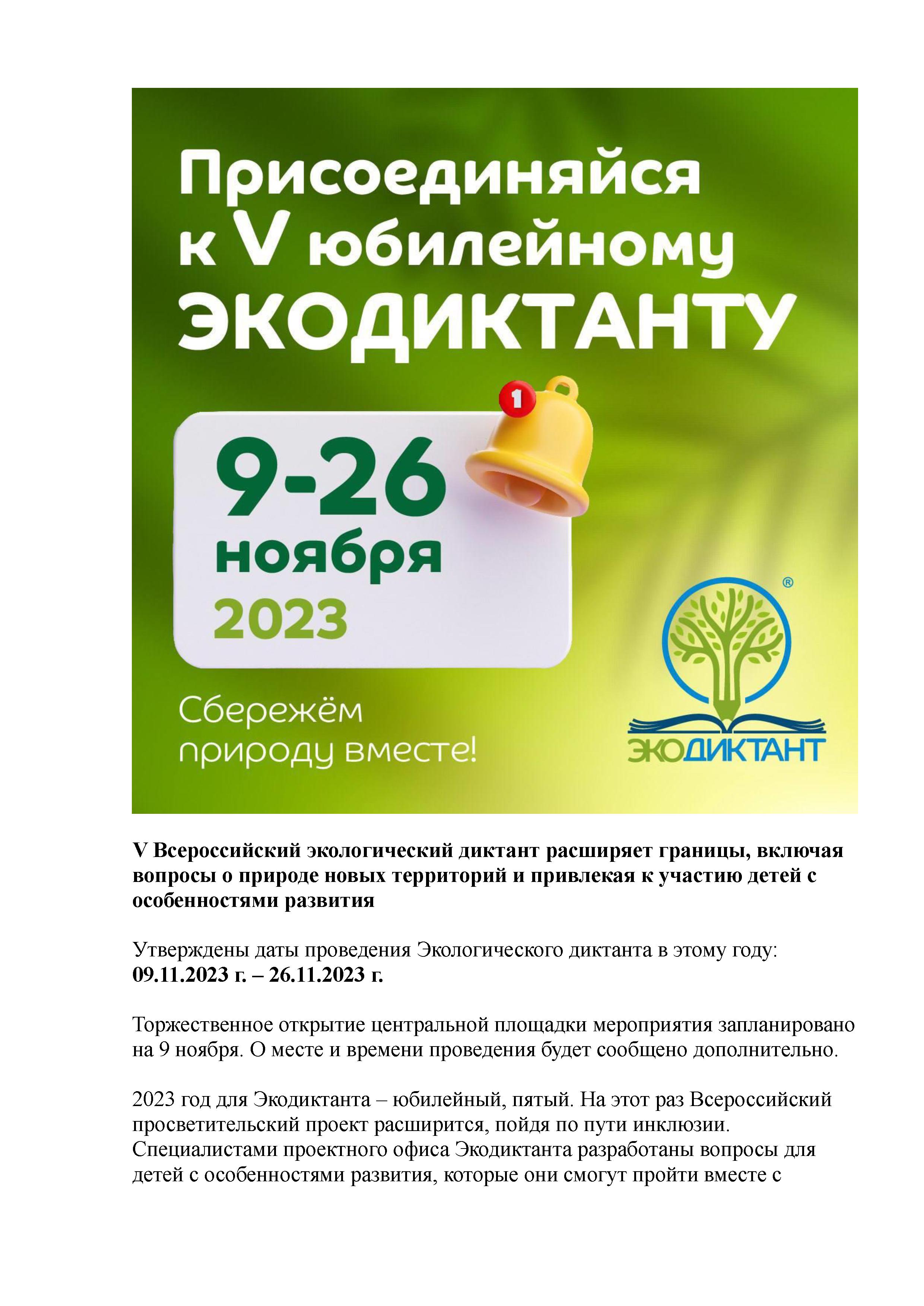 О проведении Экодиктанта в 2023 году