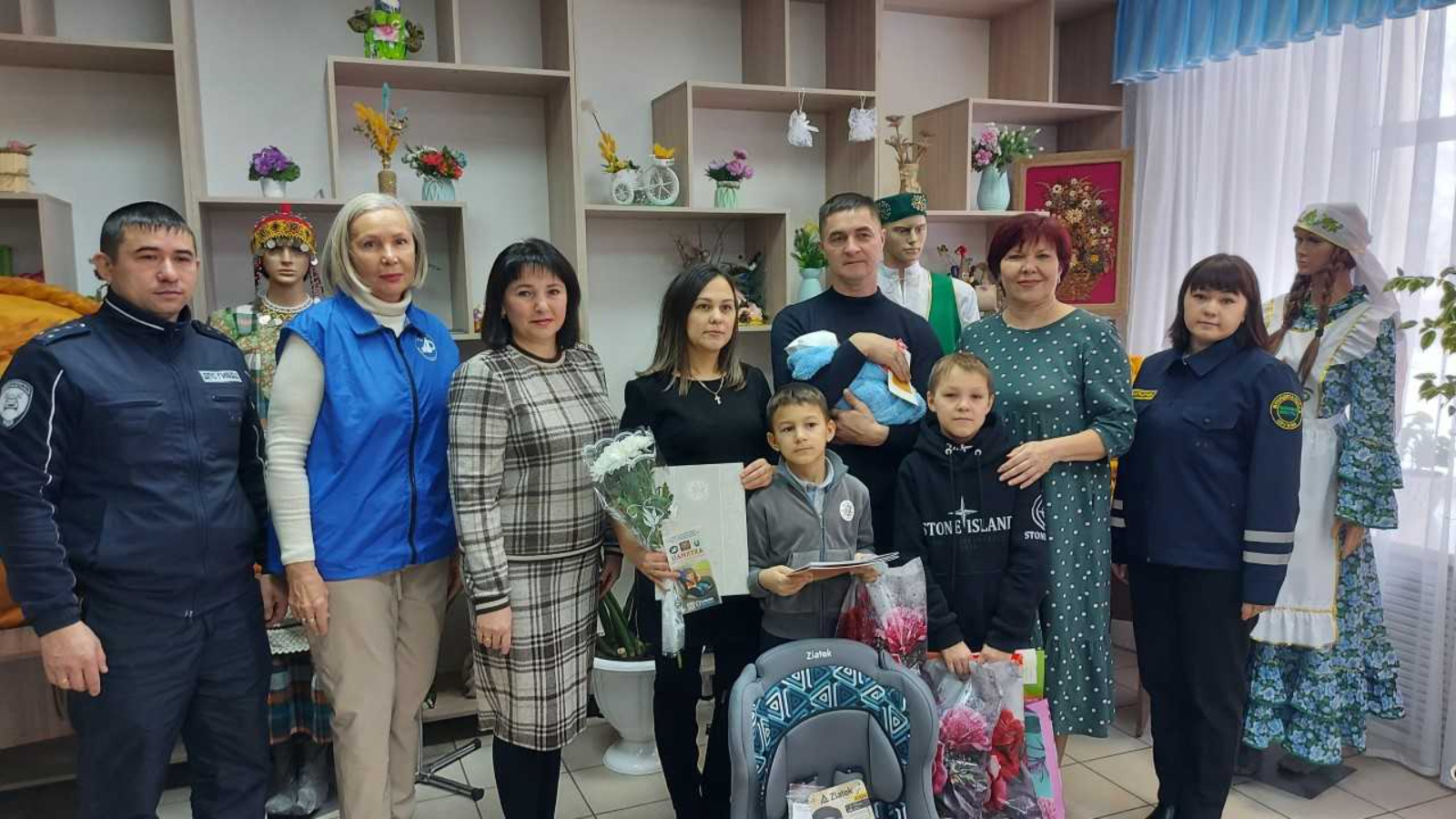 В декабре органами ЗАГС производится регистрация рождения малышей- Стрельцов. Характеристика ребенка-Стрельца гласит, что он - неисправимый оптимист, непоседа, живчик. Рожденный в период с 23 ноября по 22 декабря любит жизнь во всех проявлениях и торопится познать ее, не боясь опасностей, трудностей и риска. Семью Маслаковых из районного центра Аксубаевского района также осчастливил своим появлением на свет кроха-Стрелец. В отделе ЗАГС исполнительного комитета Аксубаевского муниципального района прошел обряд имянаречения нового члена их семьи, в котором приняли участие руководитель объединения женщин-депутатов в Совете Аксубаевского муниципального района «Мәрхәмәт-Милосердие” Ольга Копанева, начальник отдела профилактики Территориального управления ГБУ “Безопасность дорожного движения” г. Нурлат Гульфия Гималтинова, инспектор по исполнению административного законодательства ОГИБДД ОМВД России по Аксубаевскому району капитан полиции Илшат Сибгатуллин, ведущий специалист муниципальной службы по направлению деятельности в сфере обеспечения бесопасности дорожного движения Татьяна Мартынова. Всем членам семьи от гостей и организаторов праздника были вручены подарки, а у новорожденного Артема появилось свое собственное автомобильное кресло.