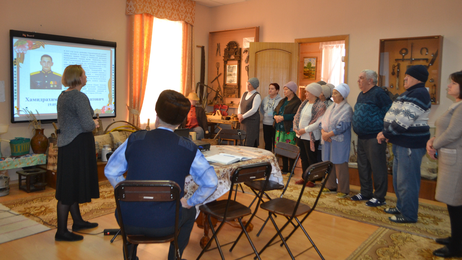 В преддверии Дня Героев Отечества Аксубаевский краеведческий музей провел обзорную экскурсию по экспозициям музея для отдыхающий КЦСОН "Нежность". Директор музея Наталия Геннадьевна ознакомила посетителей с презентацией о героях-земляках и провела тематическую беседу о героях нашего времени.