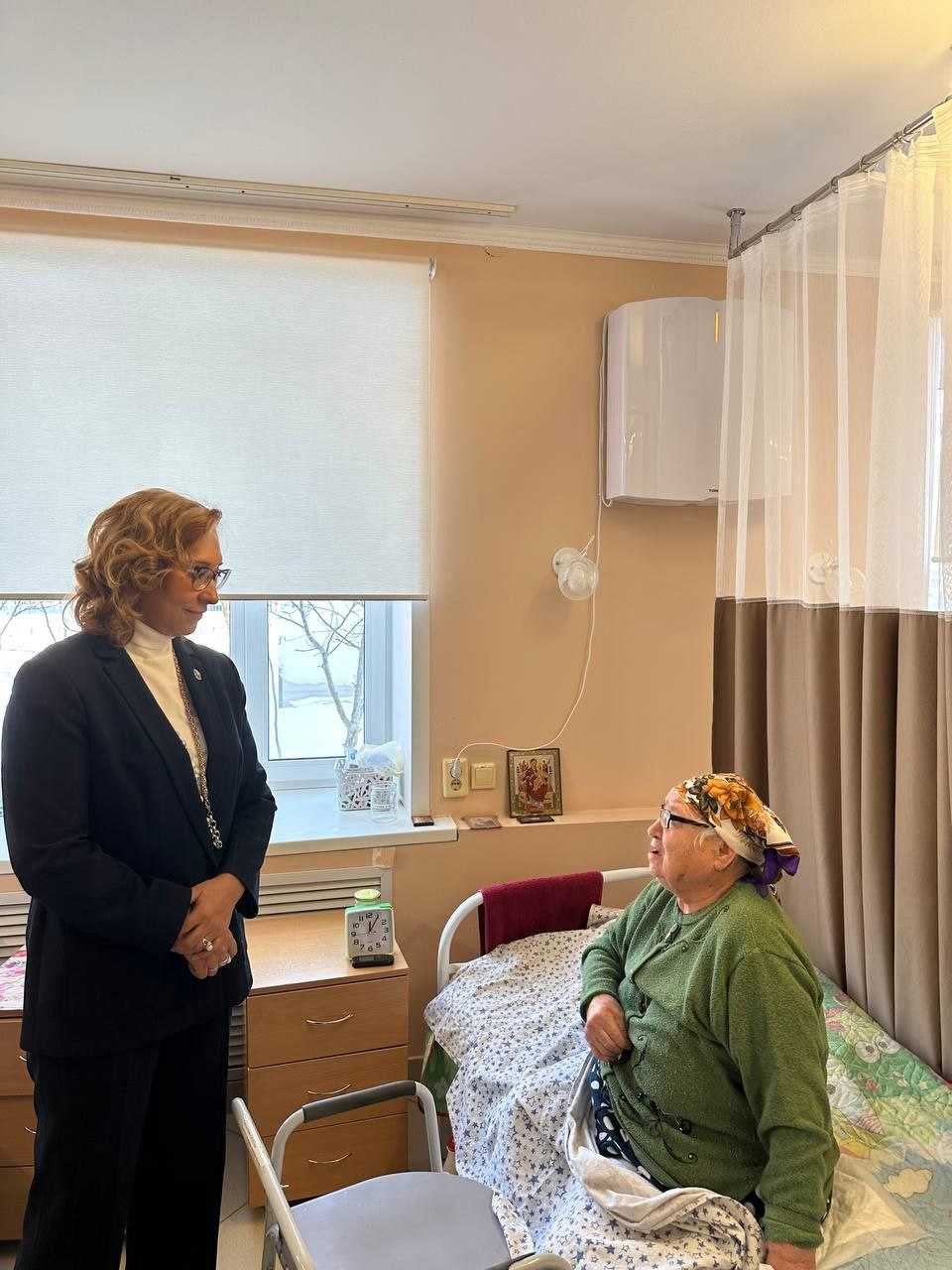 В рамках рабочей поездки Министр встретилась с получателями социальных услуг ГАУСО «Федоровский дом-интернат для престарелых и инвалидов». Эльмира Амировна пообщалась с получателями социальных услуг и акцентировала внимание сотрудников на осуществлении комплекса организационных и практических мероприятий по обеспечению пожарной безопасности в период проведения новогодних мероприятий.