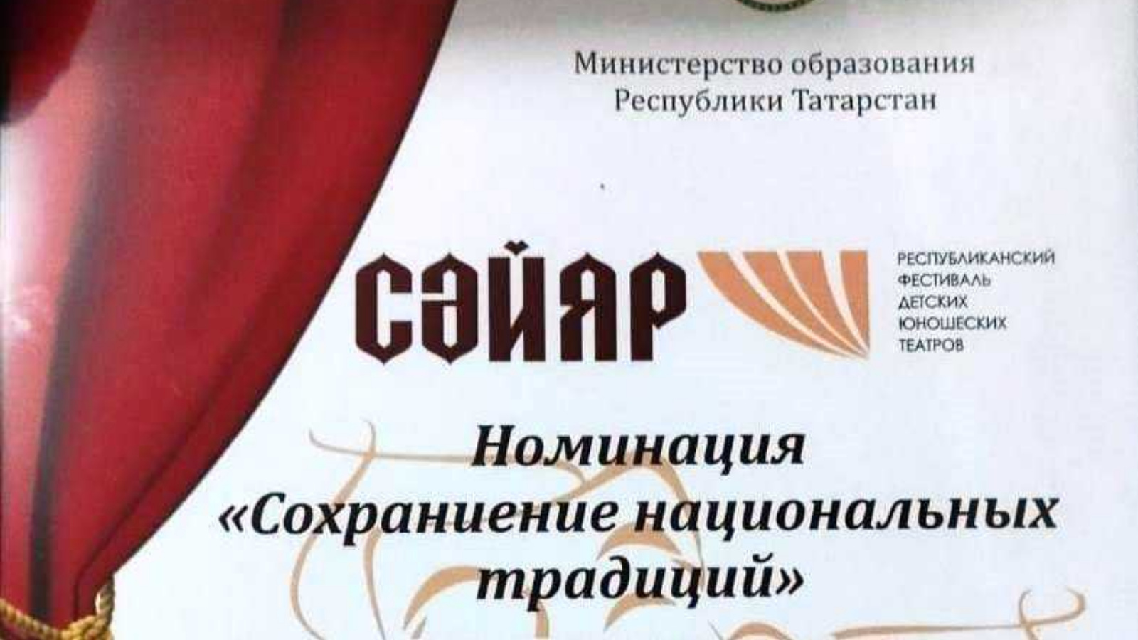 Завершился республиканский фестиваль детских юношеских театров «Сайяр», организованный Министерством образования и науки РТ в целях формирования у детей духовной культуры и бережного отношения к национальному наследию татарского народа, в рамках реализации государственной программы «Сохранение, изучение и развитие государственных языков Республики Татарстан и других языков в Республике Татарстан на 2014-2022 годы».
