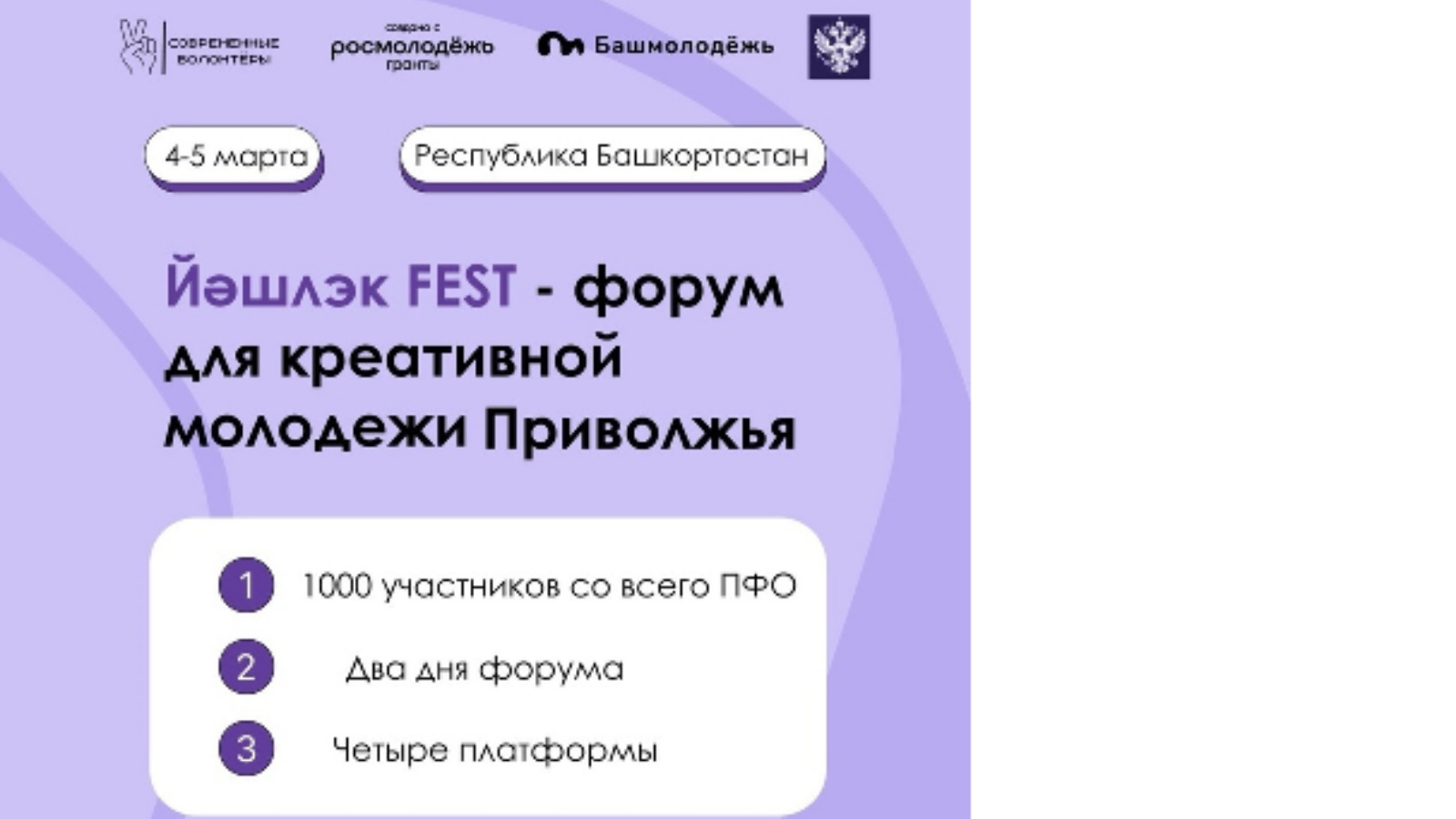 Целевая аудитория: 3000 представителей молодежи в возрасте от 14 до 35 лет, проживающих на территории Приволжского федерального округа.