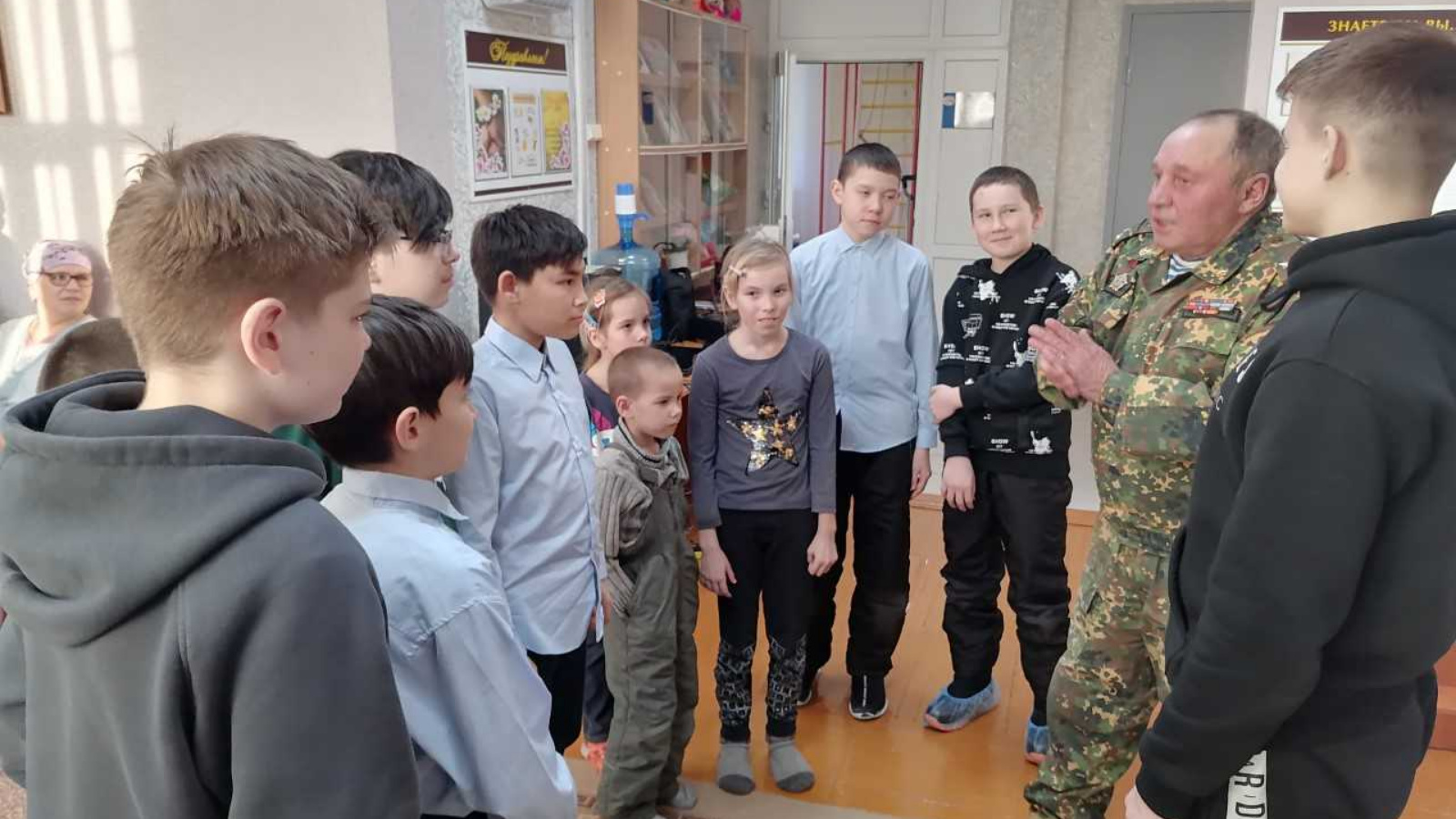 Сегодня отделение социальной помощи семье и детям озарило светлым воспоминанием о героических поступках и благородном служении. Специалисты отделения организовали встречу юных получателей соцуслуг с ветераном боевых действий, подполковником внутренней службы Гумаром Хайруллиным. Ветеран стал не только символом мужества, но и живым свидетелем непоколебимой воли и любви к Родине.