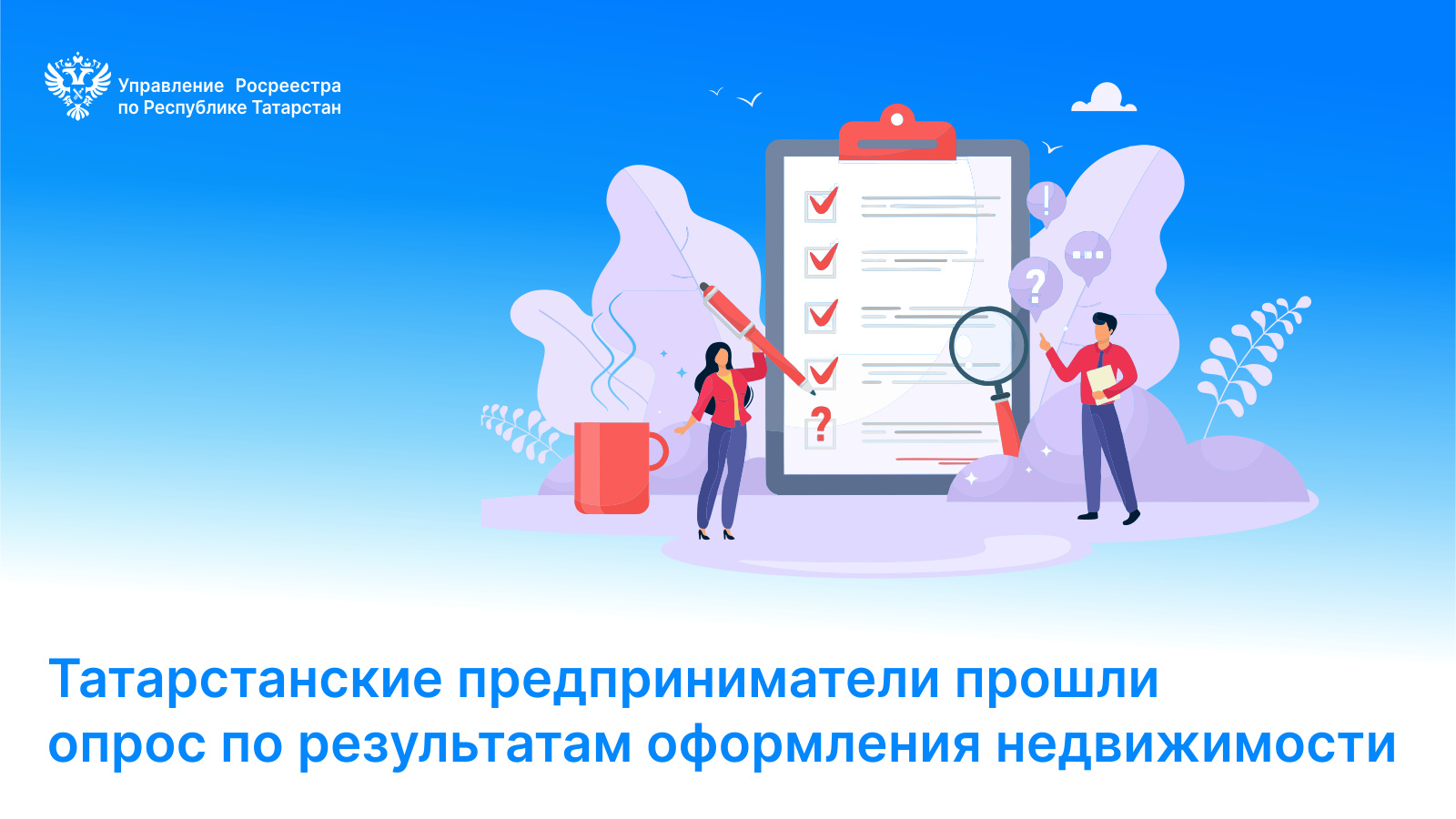 Росреестр Татарстана предложил представителям малого и среднего бизнеса оценить по 5-балльной шкале условия и качество приема документов, скорость регистрации, возможность оформления недвижимости в электронном виде и т.д. Пройти опрос можно было в онлайн-формате после оказания госуслуги - регистрации прав собственности.