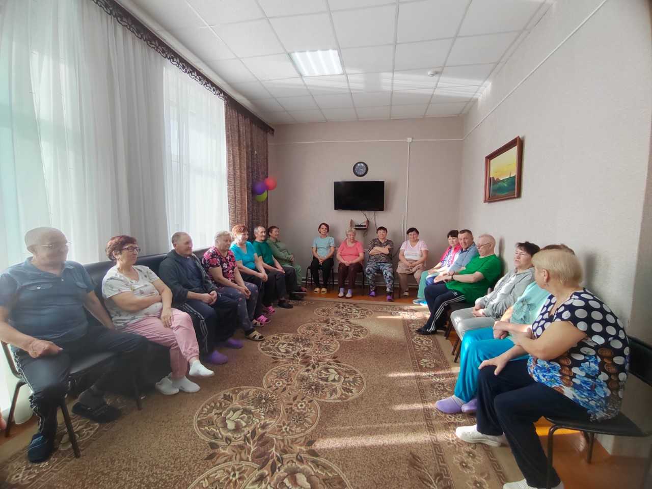 Была подготовлена развлекательная программа, где получатели одной дружной командой принимали участие в конкурсных играх, а также делились веселыми воспоминаниями из жизни. На протяжении всего мероприятия в зале царили радость, смех и веселая музыка. Все с удовольствием участвовали в весёлых викторинах и играх.