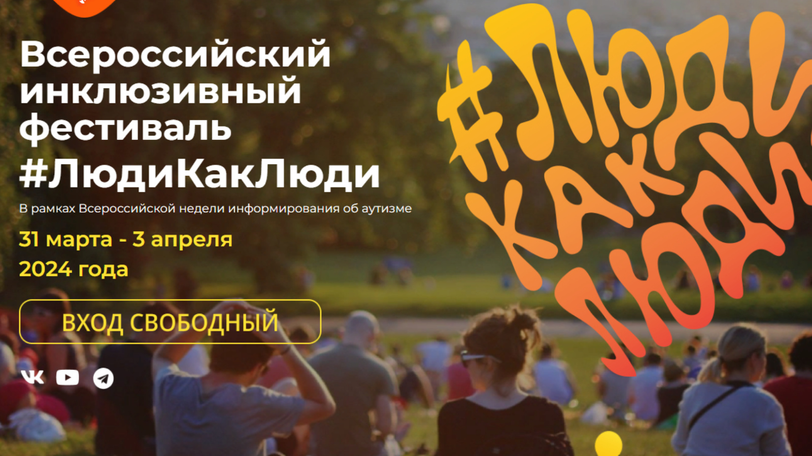 С 31 марта по 3 апреля в очном и онлайн форматах проходит VIII Всероссийский инклюзивный фестиваль #ЛюдиКакЛюди, который проводится в рамках Всероссийской недели распространения информации об аутизме.