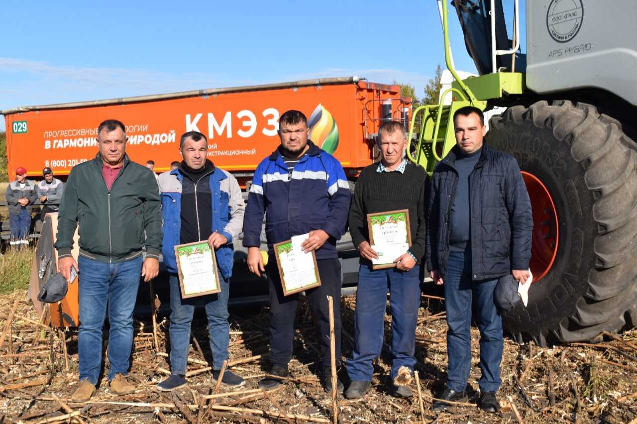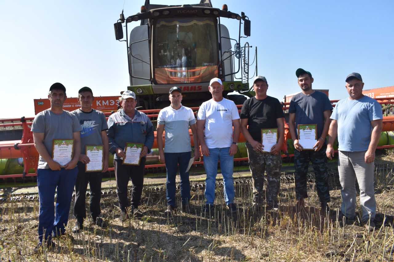 На полях района чествовали комбайнеров ООО «Волга-Селект», достигших самых высоких показателей по намолоту: Гатина Ришата, Нуртдинова Эльвира, Нуртдинова Ленара, Захарова Валентина, Кондрашова Вячеслава, Исаева Анатолия, Исламова Ильназа, Кириллова Аркадия.