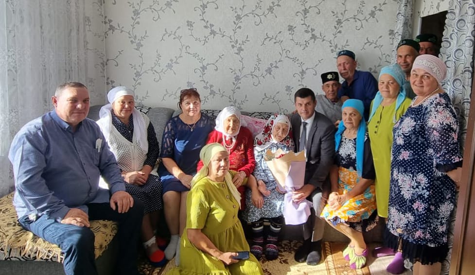 Исполняющий обязанности руководителя Исполкома района Алмаз Мингулов побывал в гостях у труженика тыла, ветерана труда, жительницы села Старые Киязлы Минслу Хасаншевны Хасаншиной. В этом году она отметила свой 100-летний юбилей.