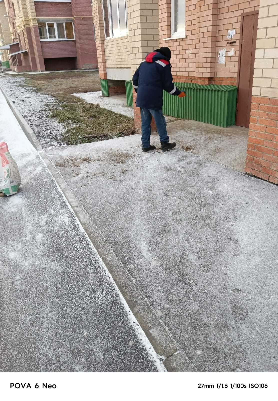 Управляющая компания пгт Аксубаево проводит обработку придомовых пешеходных территорий МКД песком и антигололедными средствами. Его мелкие частицы придают ледяной корке шероховатость, уменьшая тем самым скольжение.