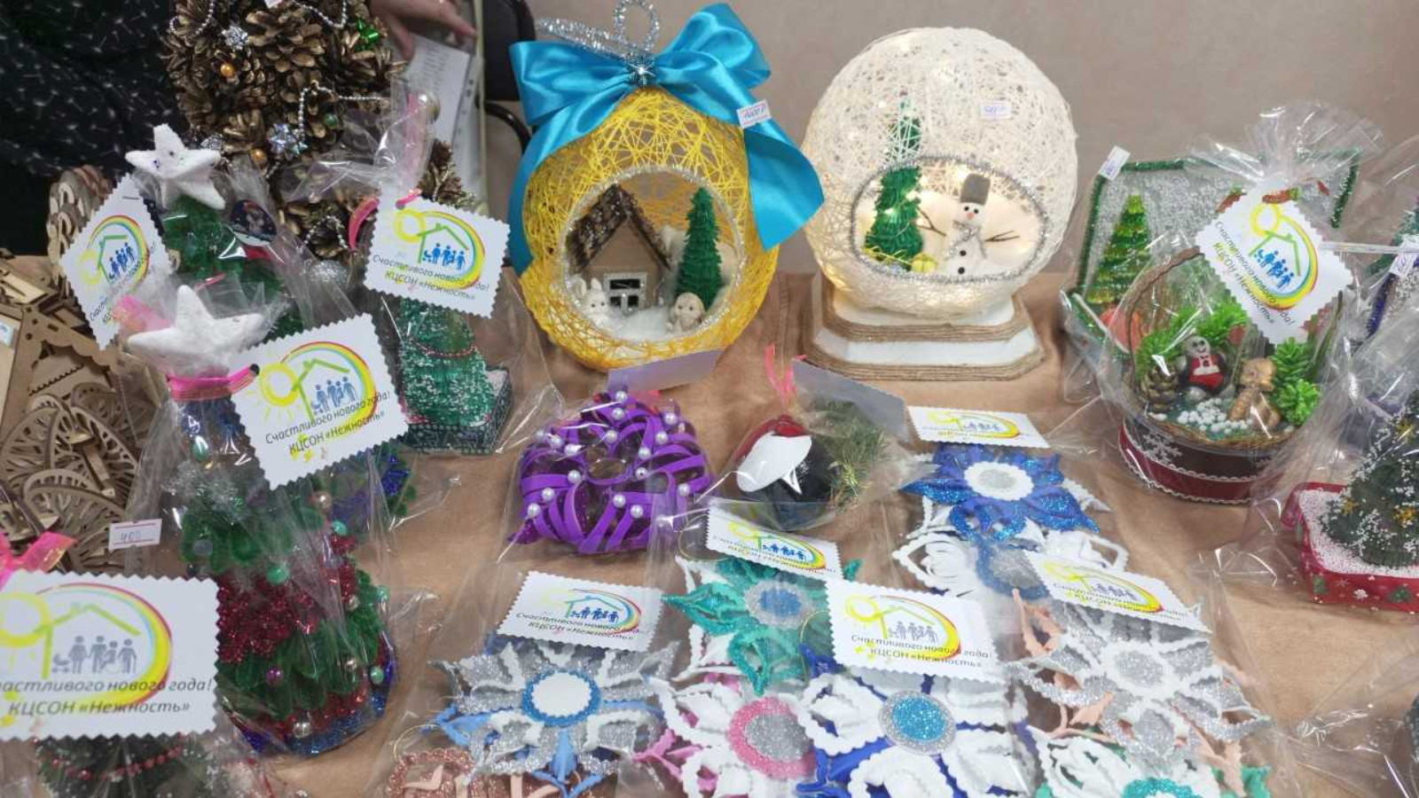 В ярмарке приняли участие КЦСОН «Нежность», Федоровский ДИПИ и СПДП «Мечта». Мероприятие прошло в рамках Декады инвалидов, которая стартовала 1 декабря. Можно отметить, что все изделия выполнены в самых разнообразных техниках. Здесь можно было увидеть вышивки, сувениры и вязаные вещи. В преддверии Нового года среди изделий преобладала новогодняя тематика — елки, елочные игрушки.