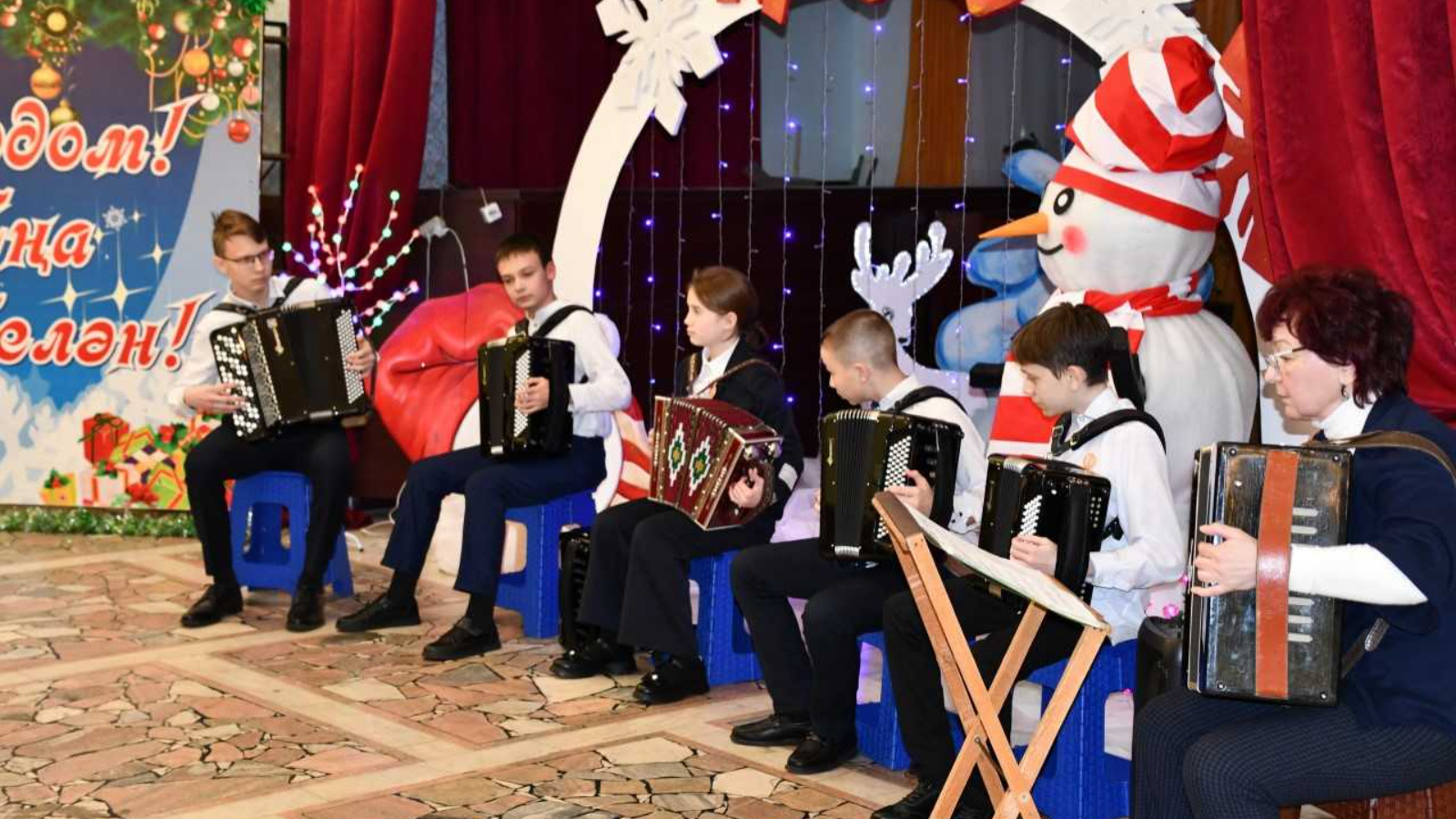 Также опытные баянисты посвятили в юные музыканты своих младших товарищей, подарили им значки и памятные подарки.