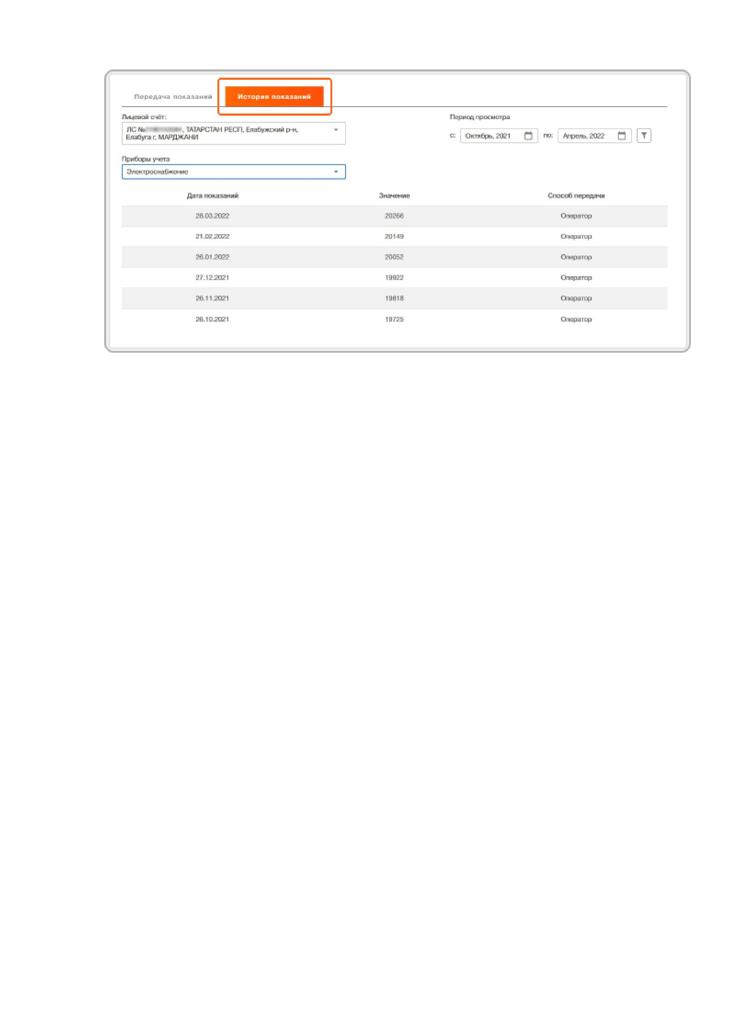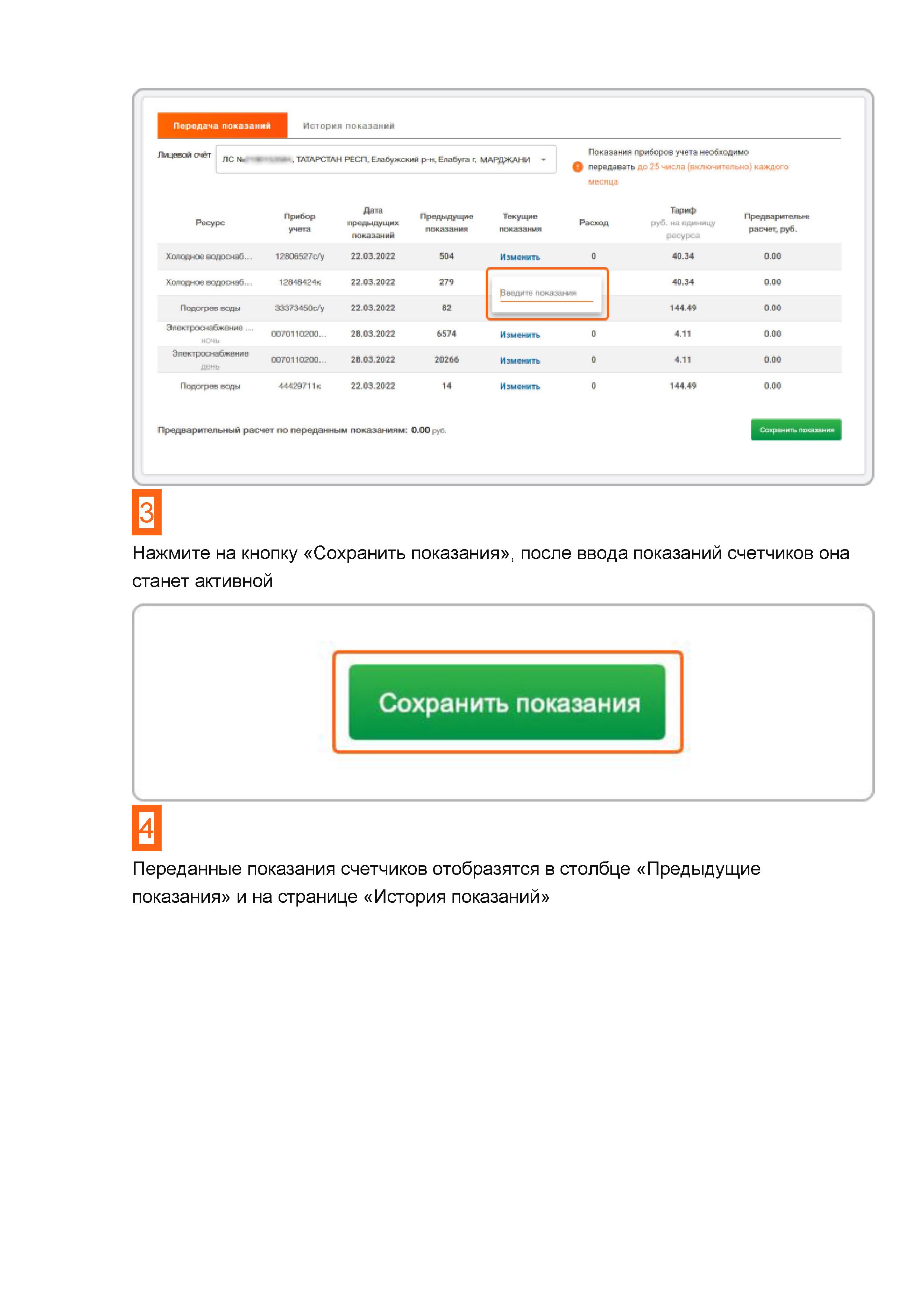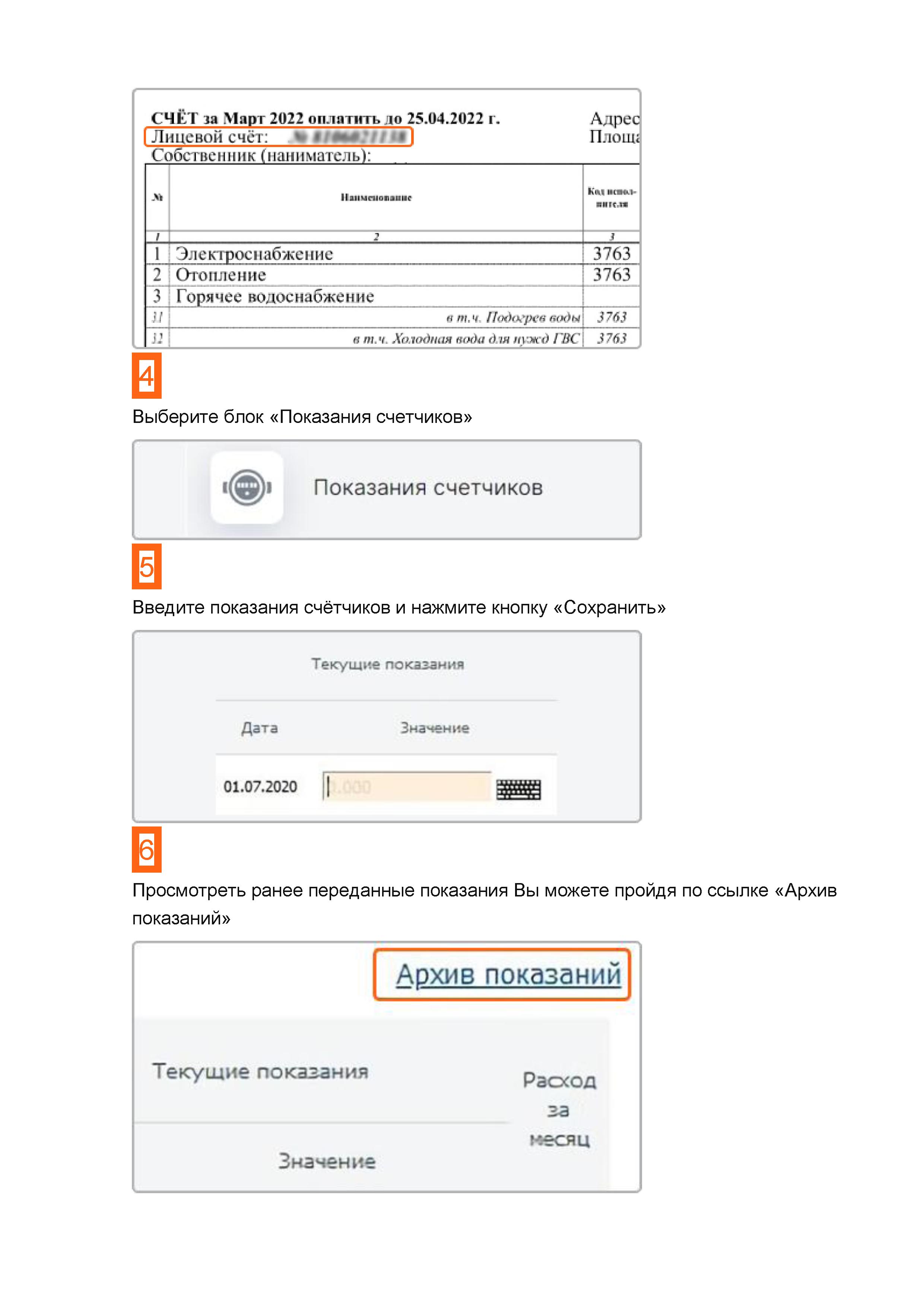 Передача показаний счетчиков коммунальных услуг