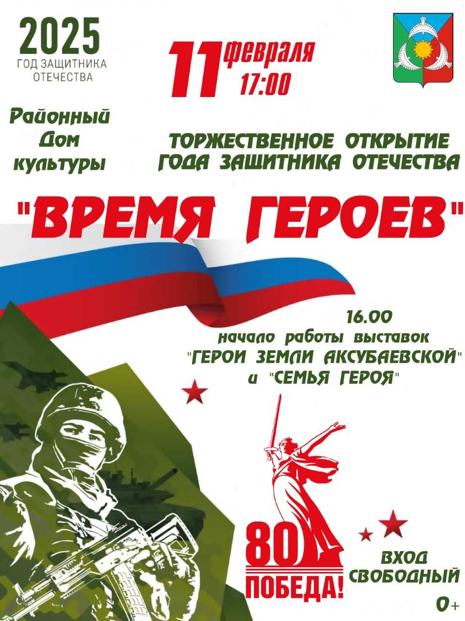 Районный Дом культуры приглашает 11 февраля жителей и гостей района на торжественное открытие Года Защитников Отечества.