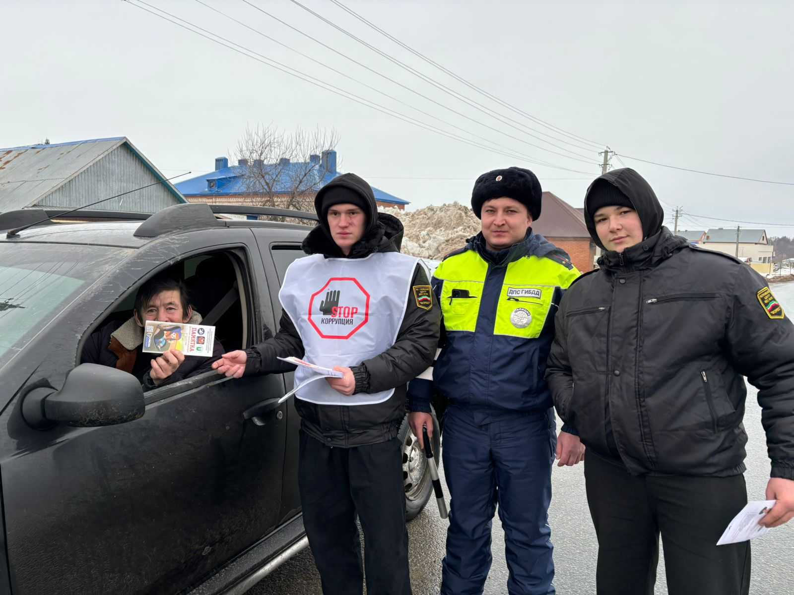 Сотрудниками Госавтоинспекции района совместно с руководителем и ребятами центра молодежного формирования «Форпост» при участии комиссии по координации работы по противодействию коррупции организовали профилактическую акцию «Стоп коррупция!».