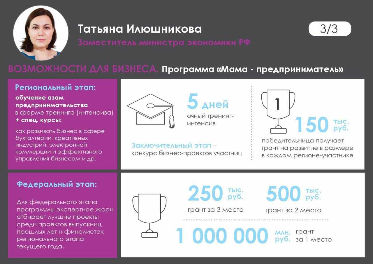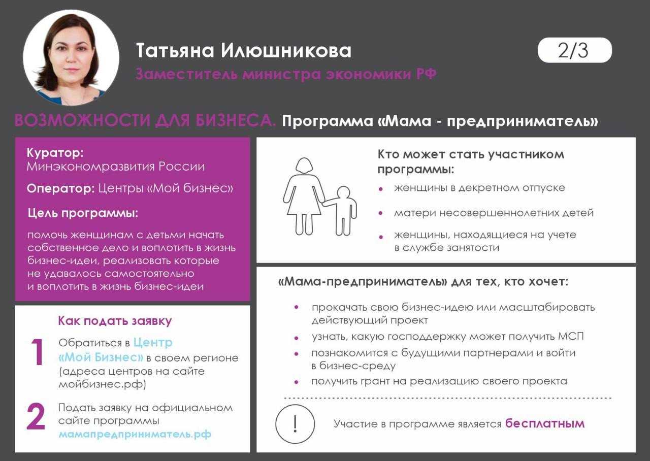 В рамках Недели женского бизнеса хочу подробнее рассказать о программе Минэкономразвития по поддержке женского предпринимательства — «Мама-предприниматель» по ссылке: