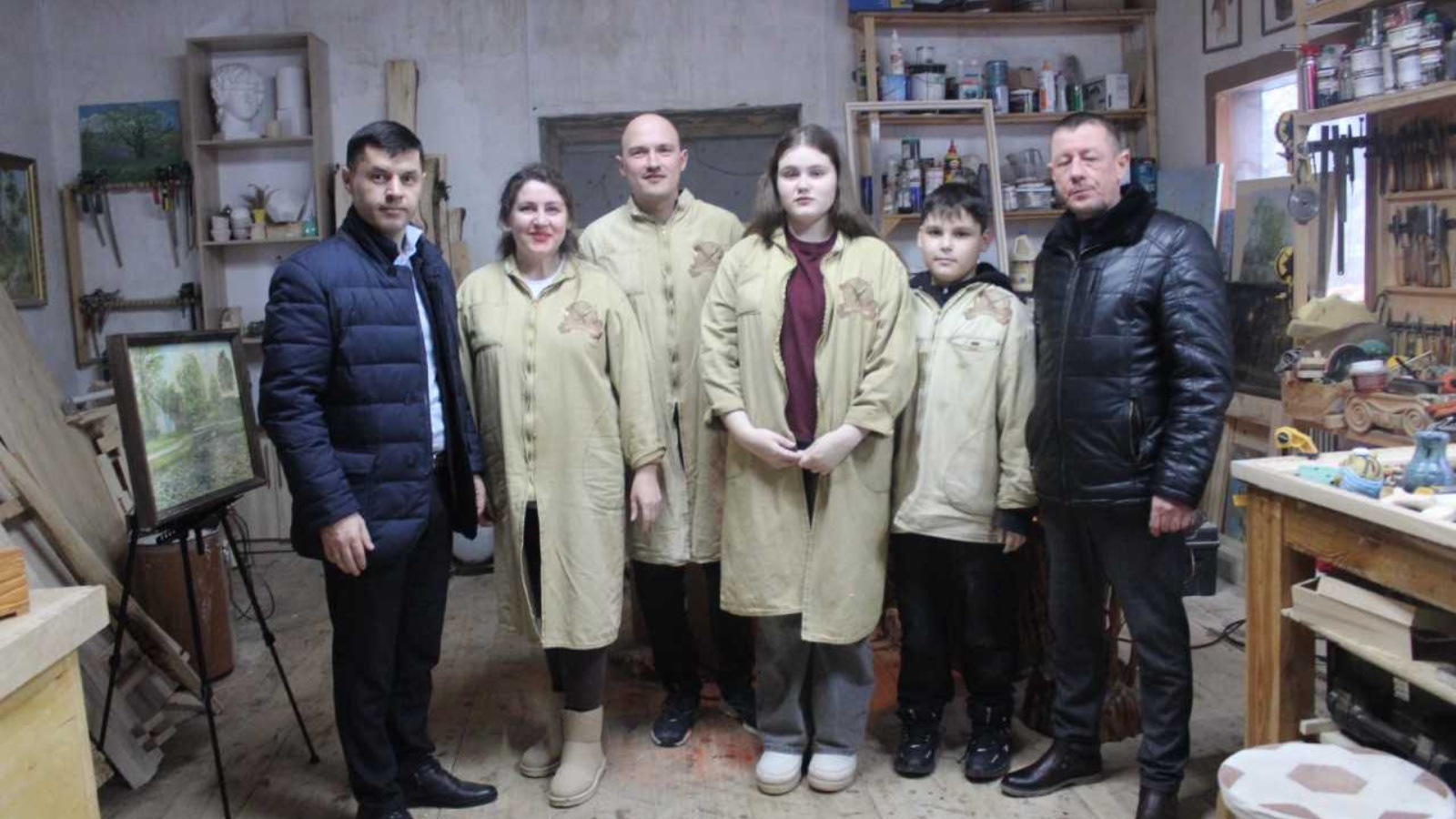 Мастерская оборудована специальным оборудованием для лепки из глины, резьбы по дереву и рисованию.