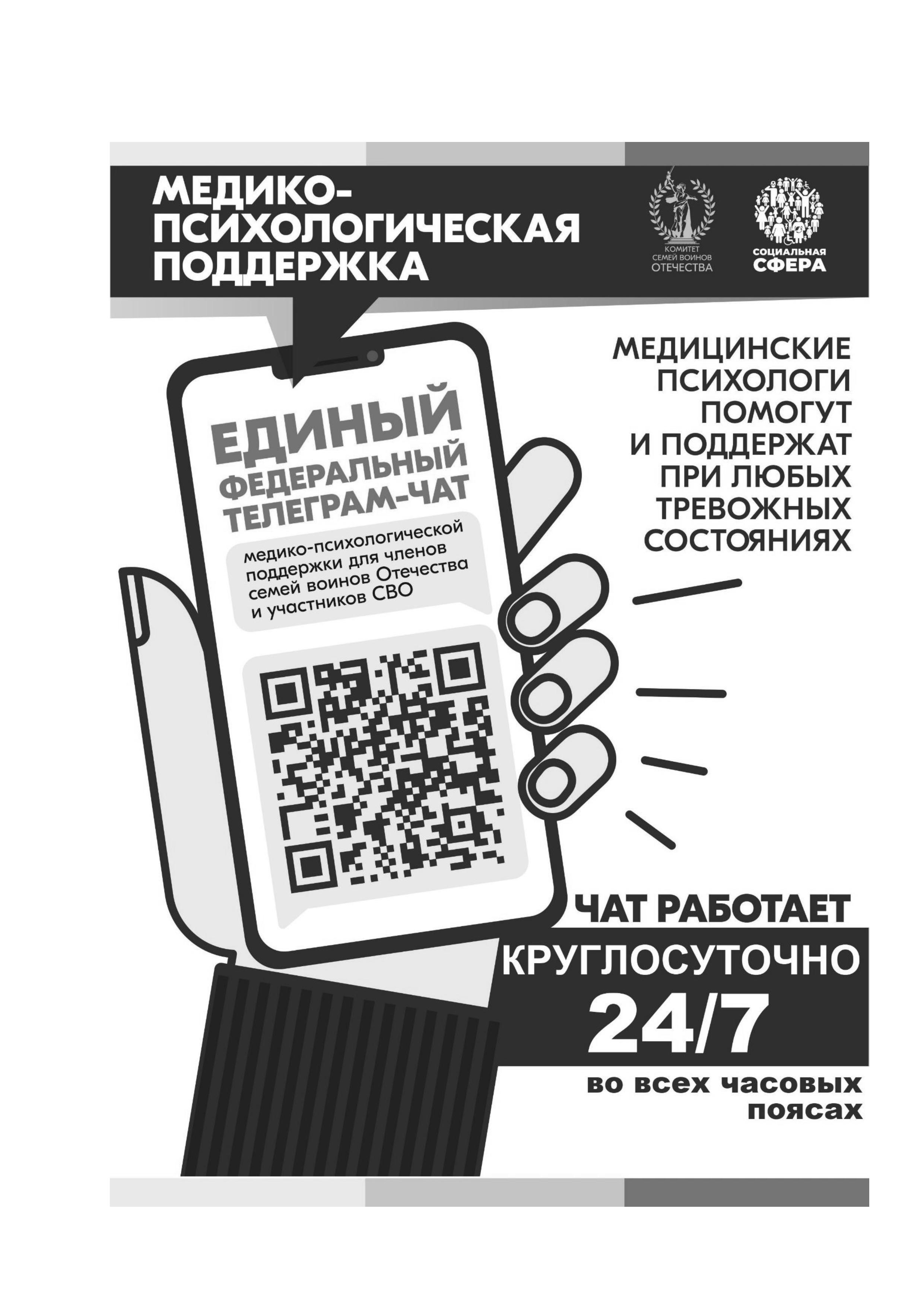 «Психологическая помощь часто нужна здесь и сейчас. Наш чат Комитета с психологами начал работу, и мы быстро поняли, что нужно делать его круглосуточным, чтобы помощь была доступна не только из любой точки нашей большой страны, но и в любое время. И сейчас нам удалось организовать работу психологов соответствующим образом. Психологи отвечают людям и помогают им круглосуточно и без выходных. Еще важно то, что к нам можно обратиться анонимно, мы не требуем раскрывать личные данные. И это тоже стало одним из дополнительных факторов востребованности именно такого формата психологической помощи, — отмечает руководитель КСВО Юлия Белехова. В чате работает команда опытных высококвалифицированных медицинских психологов, которые оказывают бесплатные медико-психологические консультации по различным тревожным состояниям. Общение в чате анонимное, без запроса персональных данных. Обратиться в чат может житель любого региона страны, независимо от своего часового пояса. «Мы видим запрос на цифровой формат общения, когда не надо идти в поликлинику, тебя не увидят соседи. За восемь месяцев работы чата специалистами отработано более 1 800 индивидуальных обращений. Сегодня мы проактивно проводим телефонные консультации и в динамике сопровождаем сложные случаи. Нам важно помочь каждому, кто испытывает любые тревожные состояния. Еще чат спасает в удаленных территориях, где отсутствуют медицинские психологи», — комментирует координатор Чата, руководитель федерального проекта «ЗдравКонтроль», член Общественной палаты Российской Федерации Евгений Мартынов. В чат уже подключилось более 11 000 человек из разных регионов страны. Организаторы: Комитет семей воинов Отечества (КСВО) и Фонд «Социальная сфера» (команда федерального проекта «ЗдравКонтроль») при поддержке Общественной палаты Российской Федерации. Будем рады вам помочь в Чате! https://t.me/+-NlCAoiZghk2OTNi