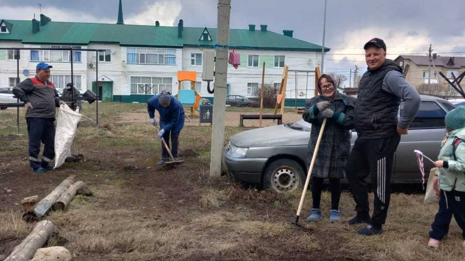 Санитарно -экологический двухмесячник по уборке прилегающей территории жильцами МКД по улице Ленина, д. 14 в пгт Аксубаево.