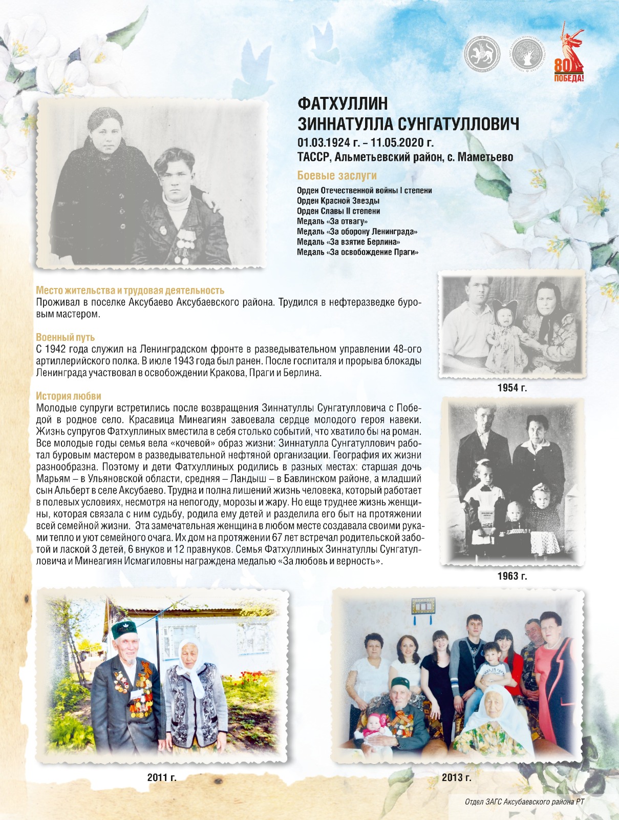Один из масштабных и значимых проектов – это фотовыставка «Где побеждает любовь», приуроченная 80-летию Победы в Великой Отечественной войне подготовленная Управлением ЗАГС Кабинета Министров Республики Татарстан и отделами ЗАГС районов и городов республики реализованная при поддержке Раиса Республики Татарстан.