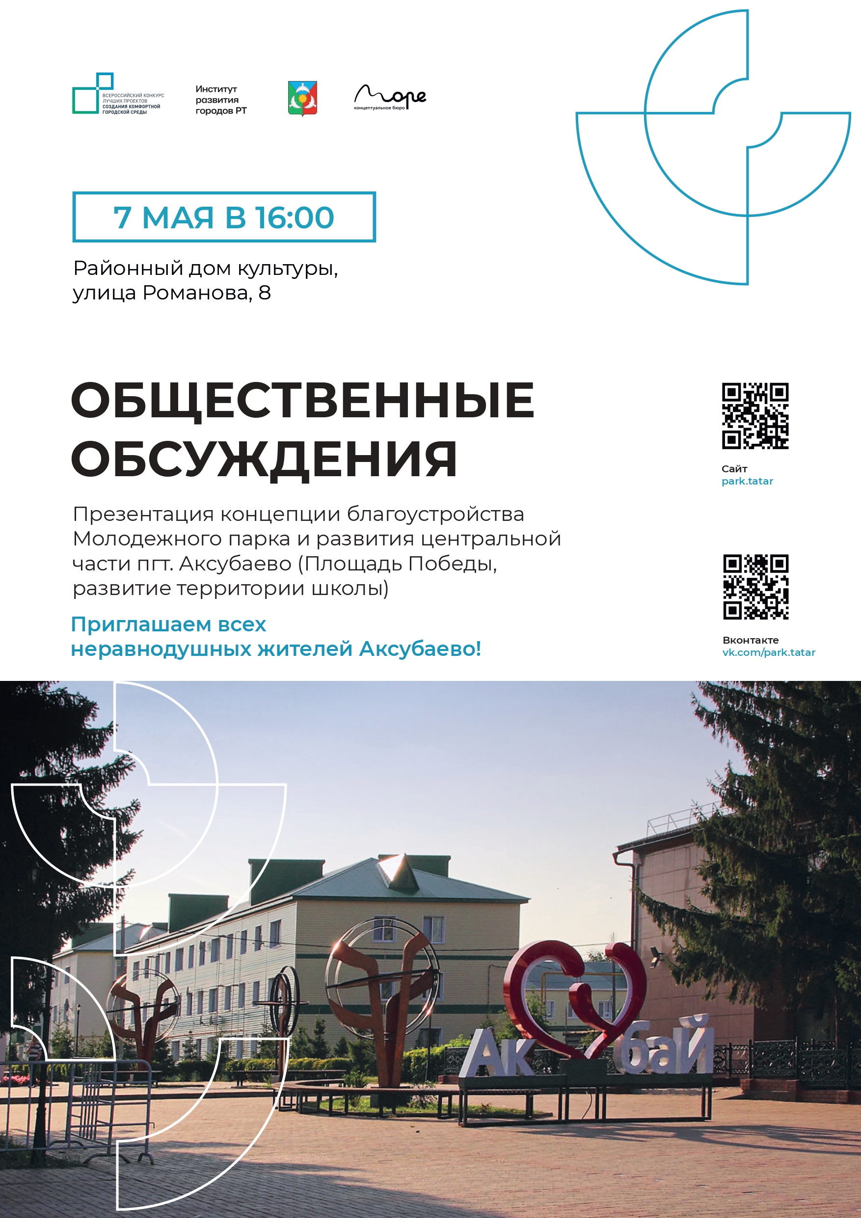 Дорогие жители Аксубаево! Наш посёлок участвует во Всероссийском конкурсе лучших проектов создания комфортной городской среды. В случае победы, мы сможем благоустроить территорию Молодежного парка и развития центральной части — и уже в 2026–2027 годах здесь появится современное, удобное и красивое общественное пространство.