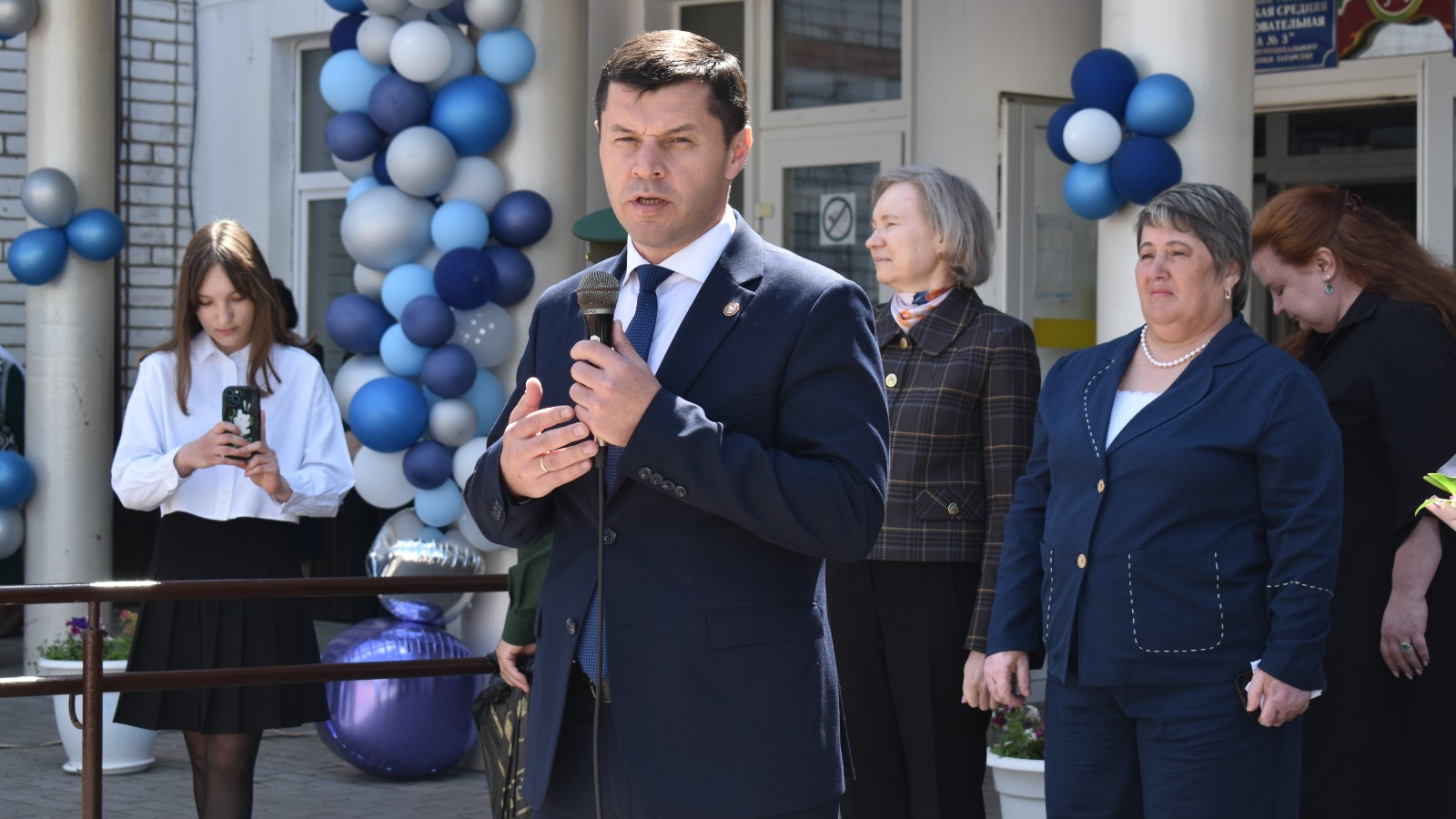 На торжественной линейке в Аксубаевской средней школе №3 побывал руководитель Исполкома района Алмаз Мингулов. Приветствуя выпускников, он высказал слова признания в первую очередь учителям и родителям за их труд в воспитании детей, наставления и поддержку.