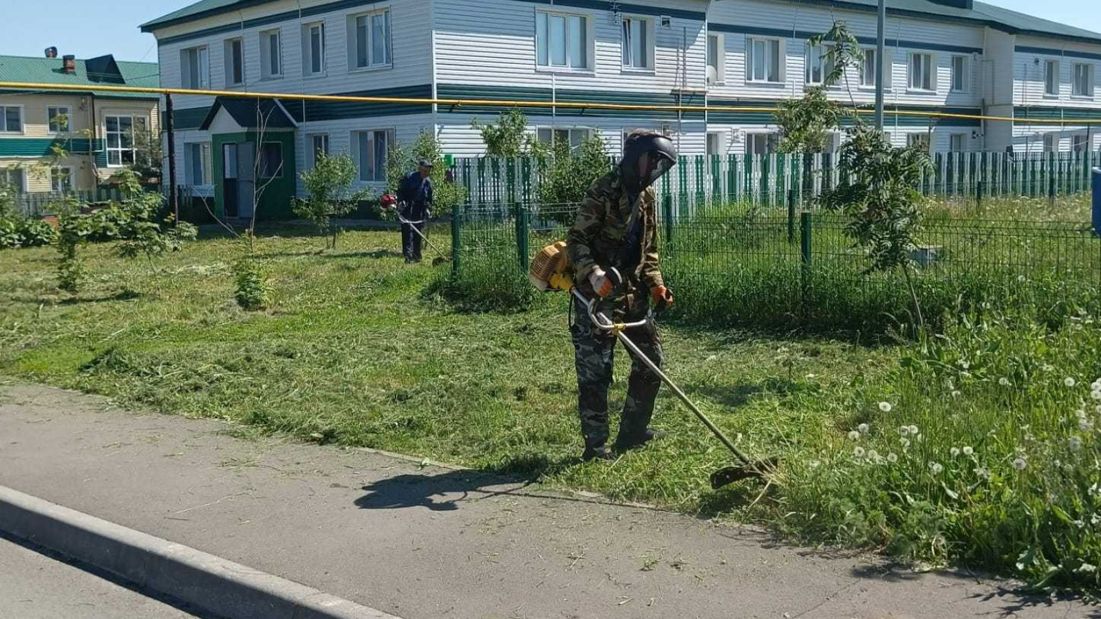 ООО "Управляющая компания пгт Аксубаево" ведет работы по обкосу придомовых территорий многоквартирных домов тер. СХТ, д. 7 и д 9 в пгт Аксубаево.