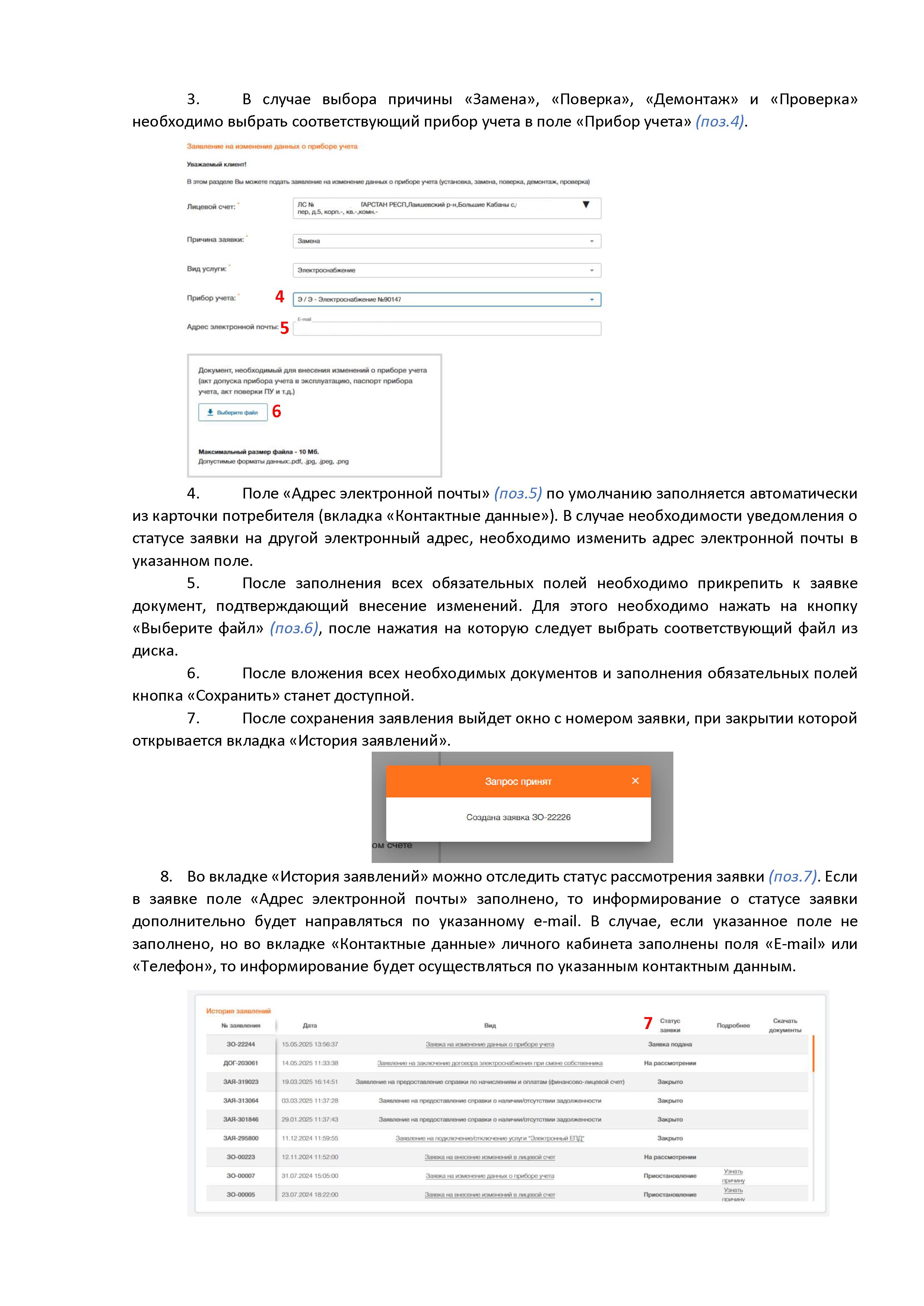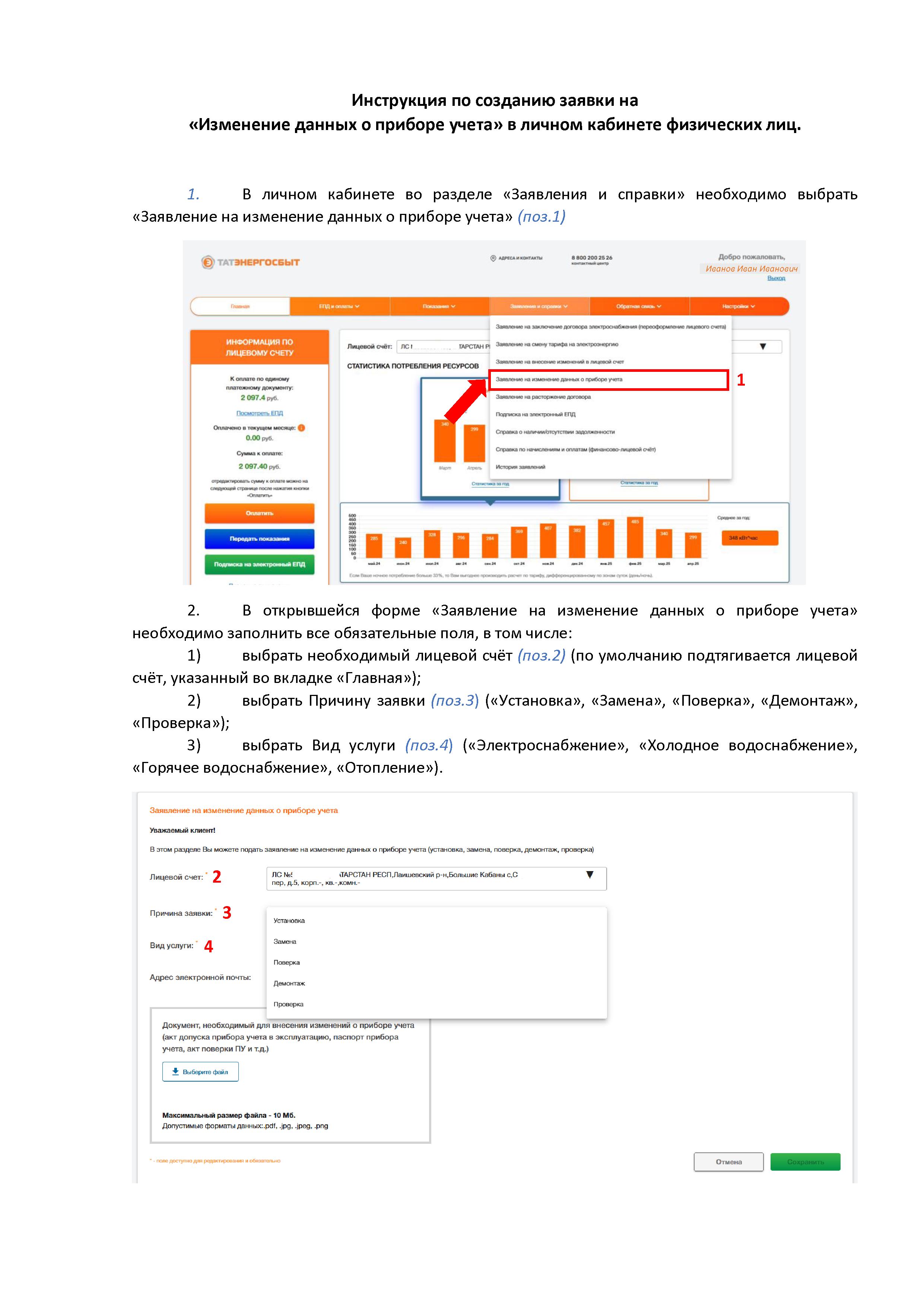 Инструкция по созданию заявки на «Изменение данных о приборе учета» в личном кабинете физических лиц.
