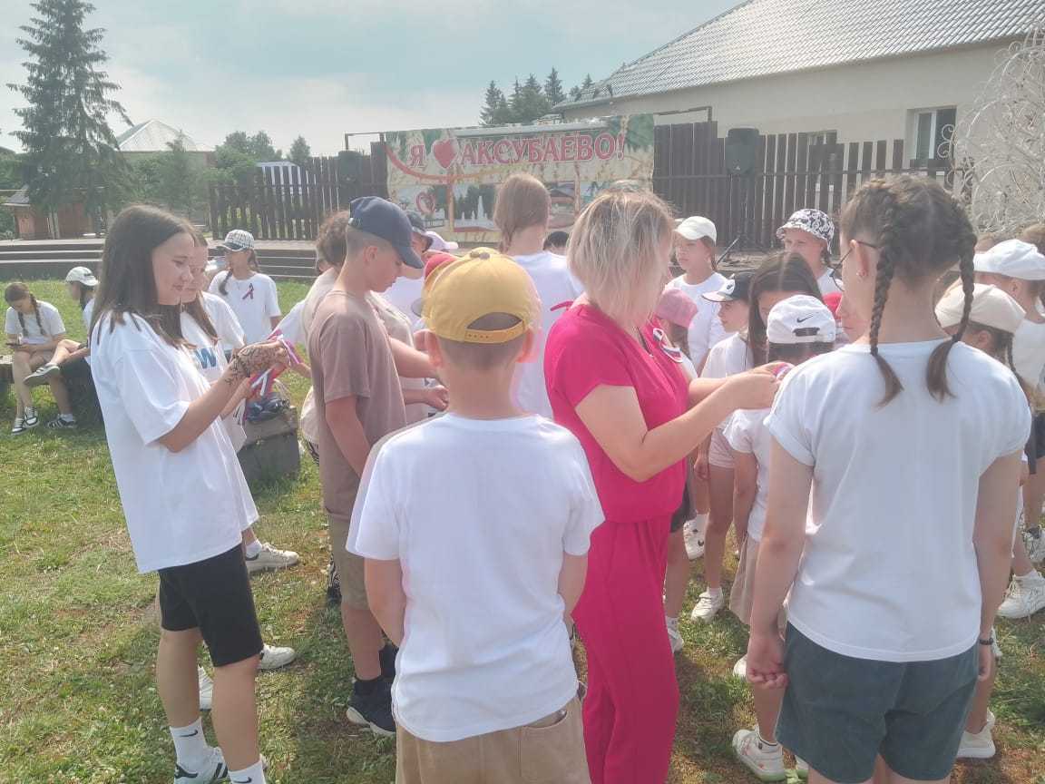 В Центральном парке Аксубаево на торжественном мероприятие, посвященное Дню России отдел по делам молодежи и спорта и «Центр «М(С) ФООП «ФОРПОСТ» организовали акцию «Российский триколор» по раздаче ленточек, которые по цветовой гамме аналогичны флагу России, а также акцию «Красная гвоздика» - это символ нашей общей помощи ветеранам Великой Отечественной войны и других боевых действий.