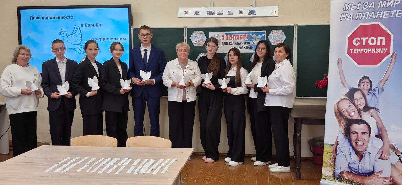 Помощник главы по вопросам противодействия коррупции Эльмира Крайнова и куратор советников директоров по воспитательной работе Наталья Хайруллина в рамках реализации Комплексного Плана противодействия идеологии терроризма провела беседу с учащимися 10 классов. Целью мероприятия стало формирование у молодежи антитеррористического мировоззрения, привитие неприятия террористической и экстремистской идеологии, привлечение внимания к важности борьбы с терроризмом, а также сохранение памяти о трагических событиях Беслана и других террористических актах.