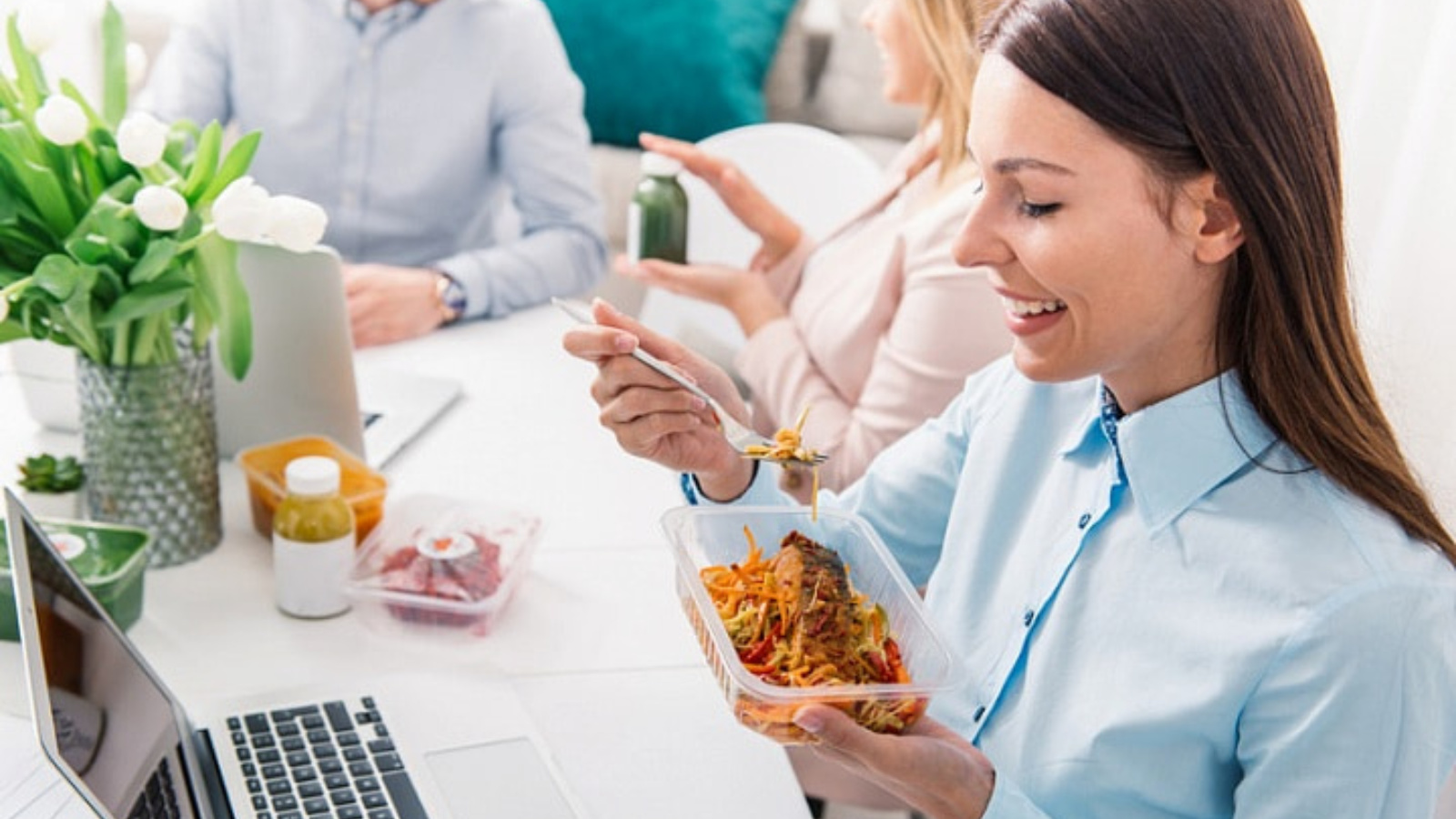 Бич нашего времени для многих работающих людей – не успеваем полноценно пообедать. Поэтому самое главное, чтобы рацион в течение дня был достаточно калорийным. В целом желательно есть не реже, чем через 4 часа, но если на работе нет столовой, а перекусить необходимо, то перекус должен быть здоровым. Это, конечно, не пирожные с тортиками и бутерброды.