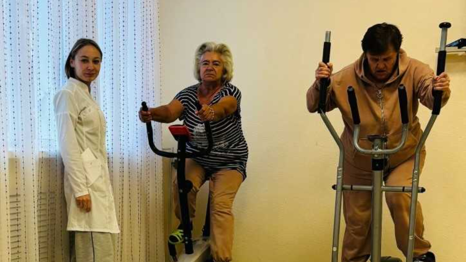 👯Эльза Эдуардовна показала упражнения на тренажёрах для укрепления опорно-двигательного аппарата.