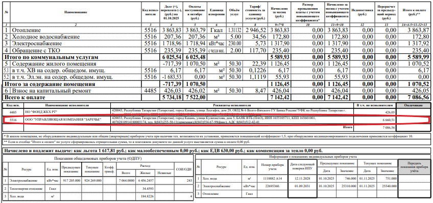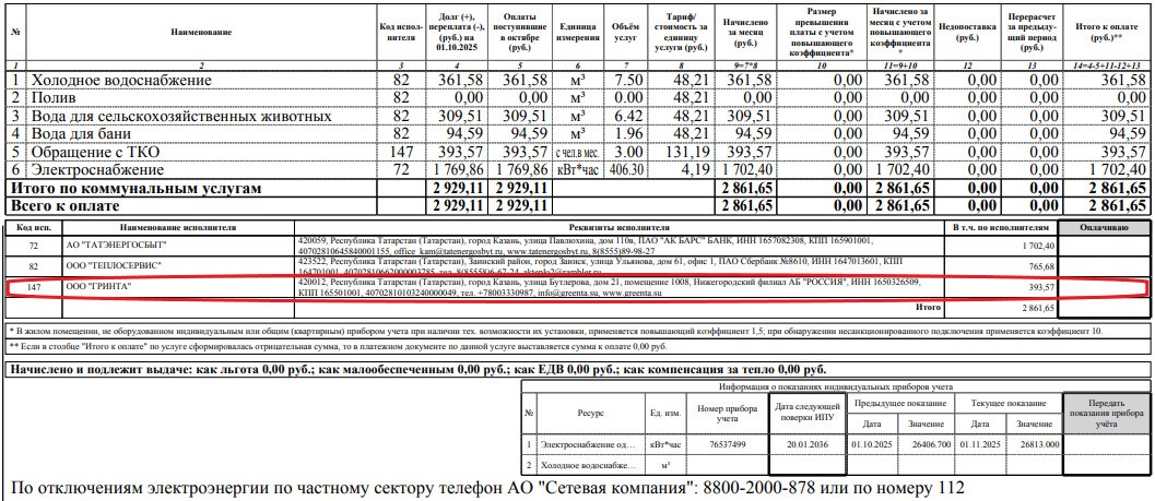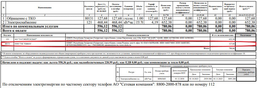 В многоквартирных домах – управляющая организация (управляющая компания, ТСЖ, ТСН) или региональный оператор по обращению с ТКО. Информация об исполнителе услуги отражена в нижней части платежного документа (рис.1, 2, 3).