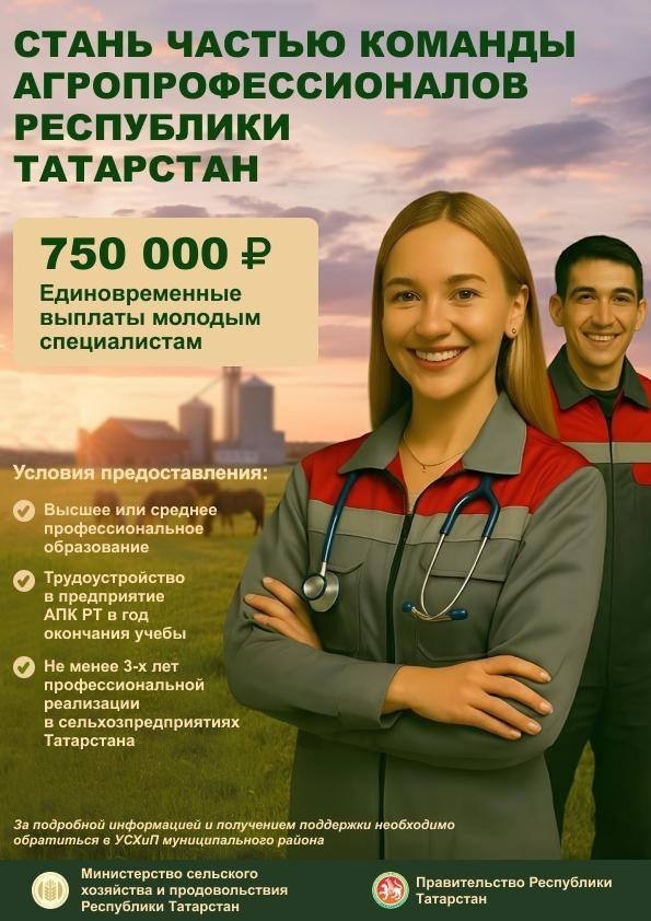 750 000 рублей — это не просто поддержка, а инвестиция в будущее молодых специалистов аграрной отрасли Республики Татарстан.