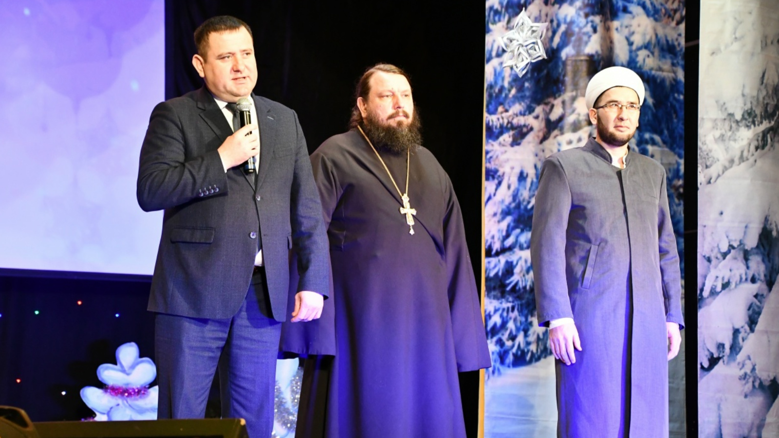 С приветственным словом и тёплыми поздравлениями к зрителям обратились заместитель руководителя Исполнительного комитета муниципального района Республики Татарстан по социальным вопросам Алексей Тимирясов, настоятель Аксубаевского православного храма протоиерей Александр Качаев и имам-мухтасиб района Равиль хазрат Камалетдинов.